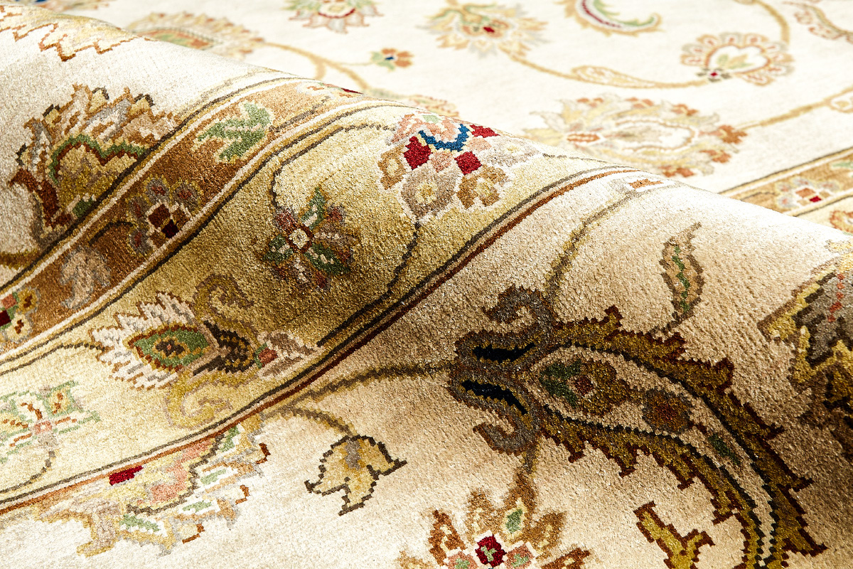 Более пяти веков назад в городе Агра зародилась знаменитая индийская школа ковроткачества, прославившаяся не меньше, чем расположенный здесь же Тадж-Махал. Мощное персидское влияние, помноженное на местный колорит, привело к появлению оригинальных орнаментов с богатыми растительными узорами — причудливым цветам, ветвям и листьям, разбросанным по всему полю ковра.