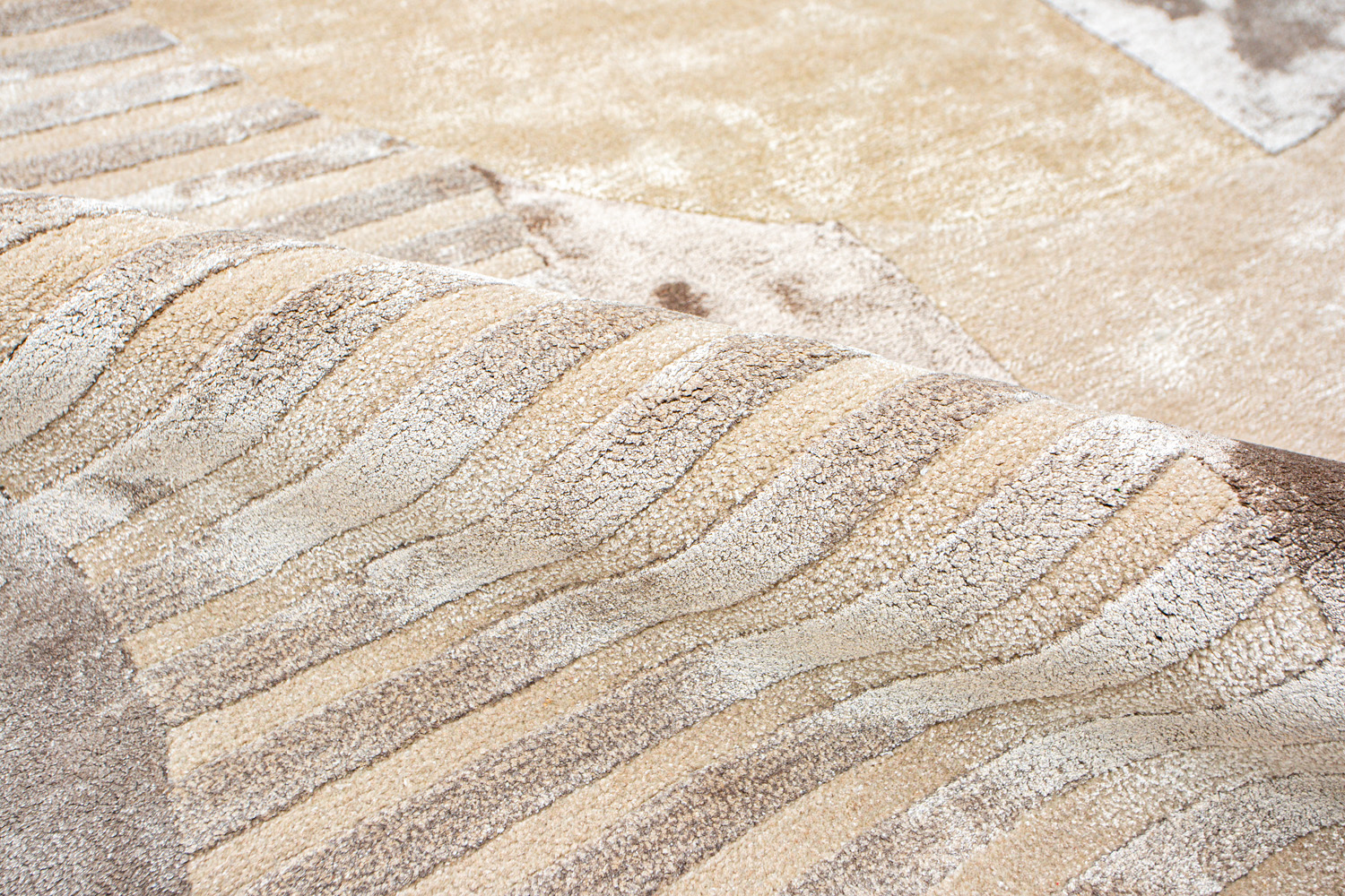 Ковры изготовлены методом ручного тафтинга. Эта технология позволяет создавать объемный рисунок и мягкие переходы цвета. Почитатели коллекции Shine ценят богатую фактуру ковров в сочетании с натуральными материалами и превосходной техникой в исполнении индийских мастеров.