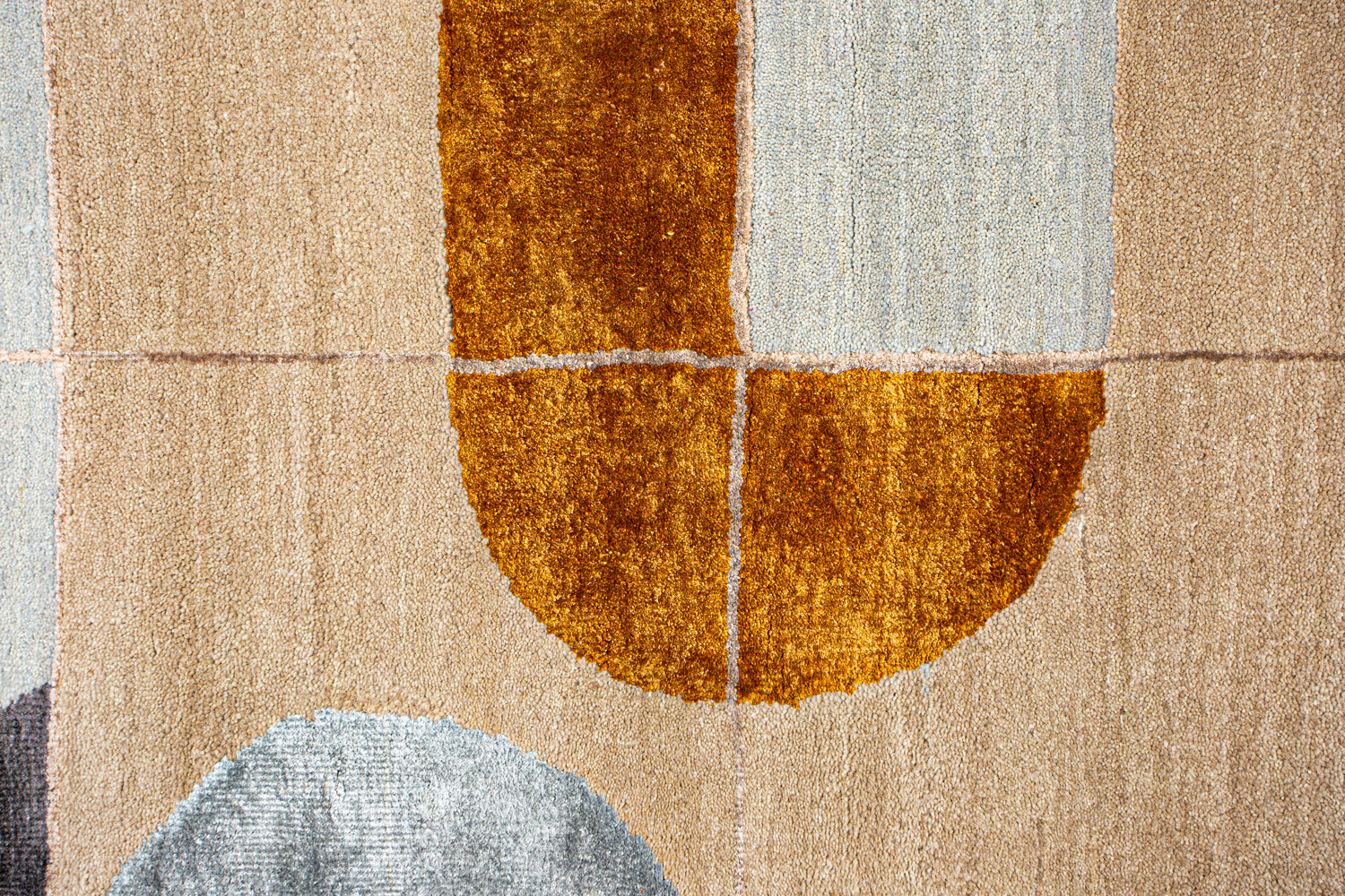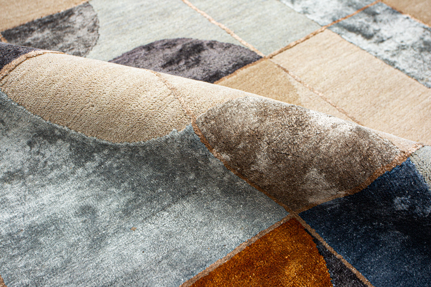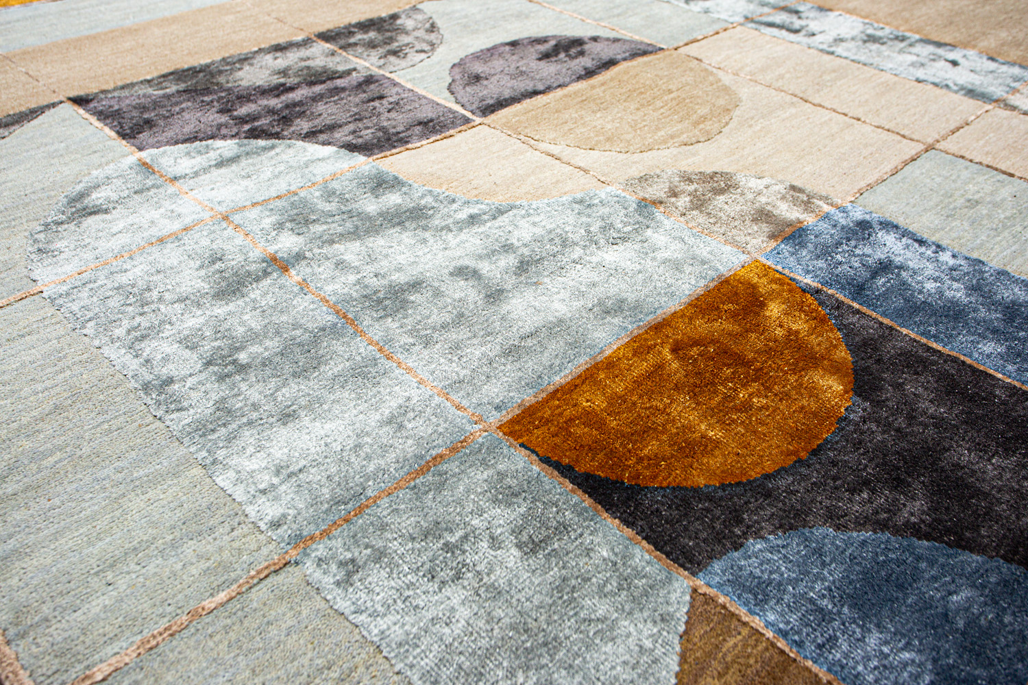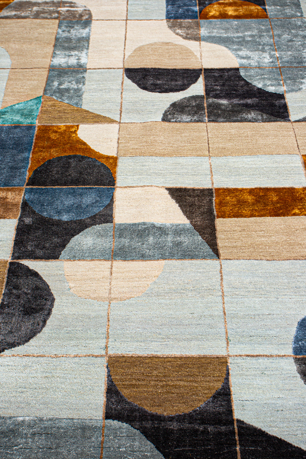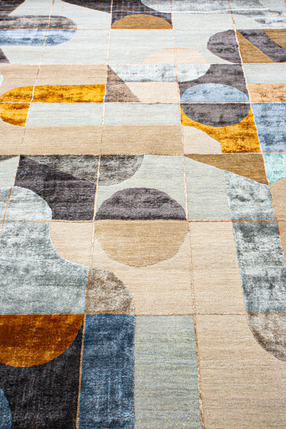 Крупные рисунки в виде линий и фигур на фактурной поверхности ковра превращаются в выразительные композиции. Они акцентируют на себе внимание и добавляют динамики в современный интерьер. Комбинации разных фигур и повторяющийся орнамент задают ритмическую основу пространству, привносят в него оригинальные оптические иллюзии.