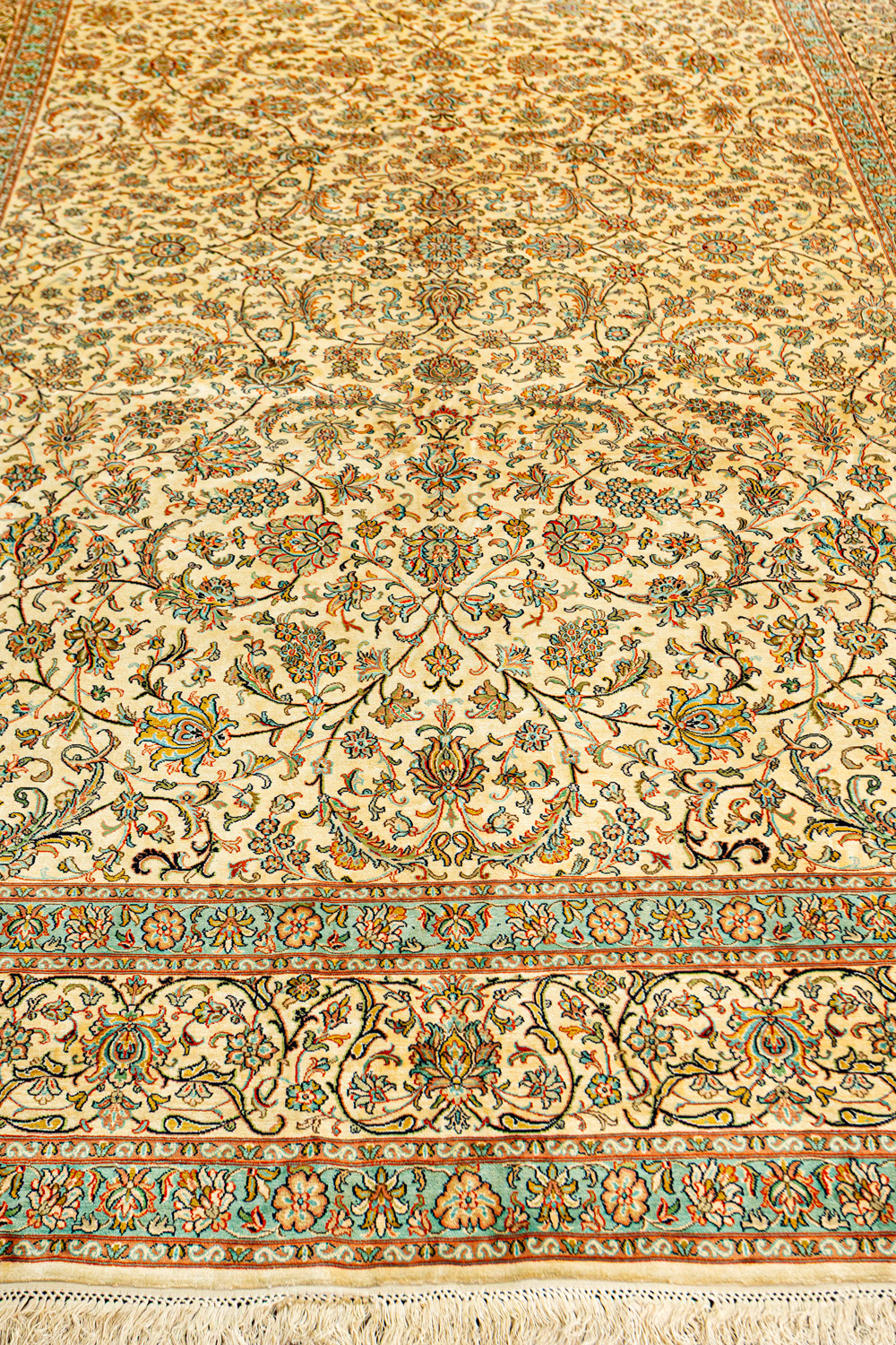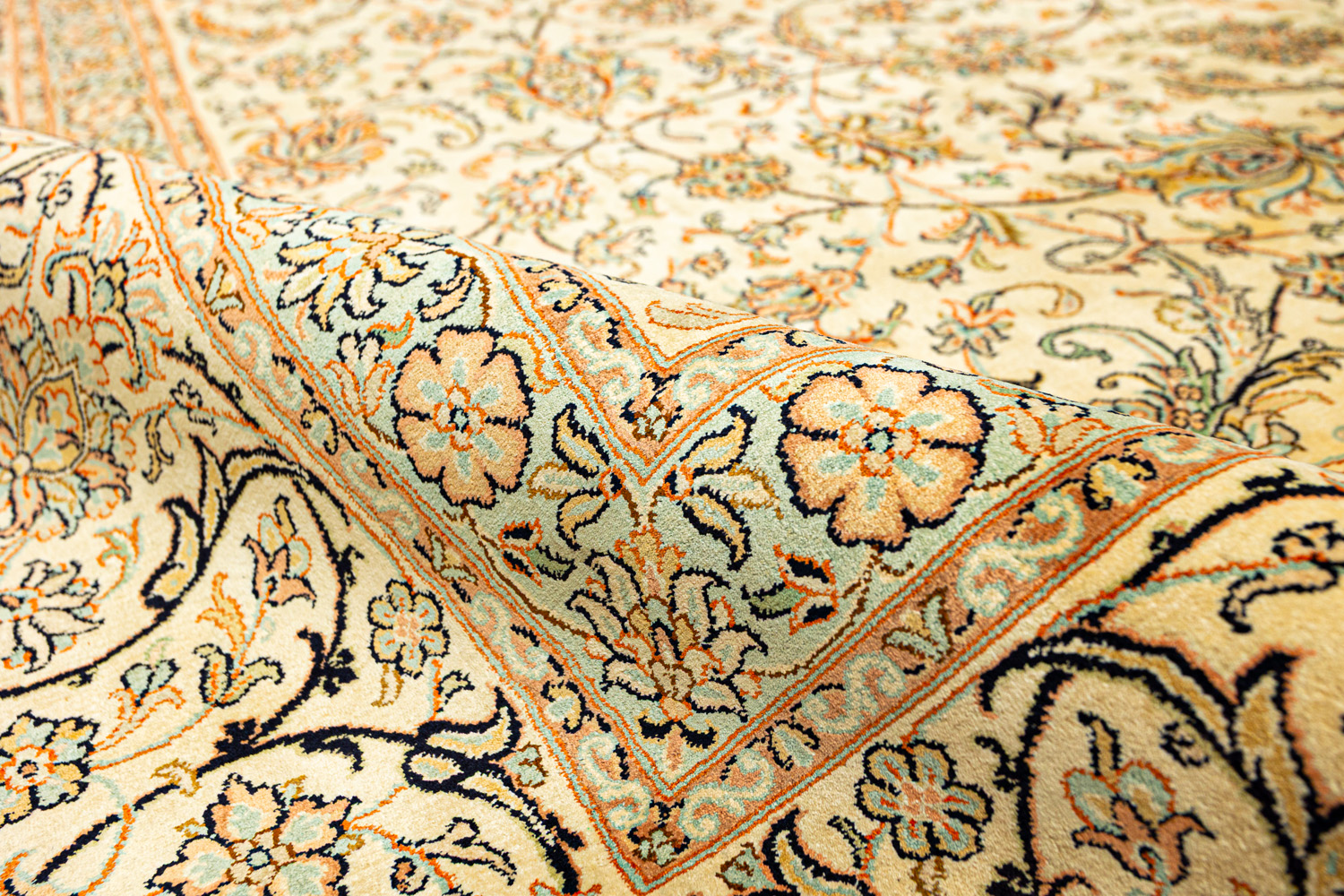 Ковры из коллекции Кашмир ткутся по традиционной технологии из нежнейшего кашмирского шелка. Лучшие произведения индийских мастеров отличает высокая узелковая плотность, прочность и яркость цветов.