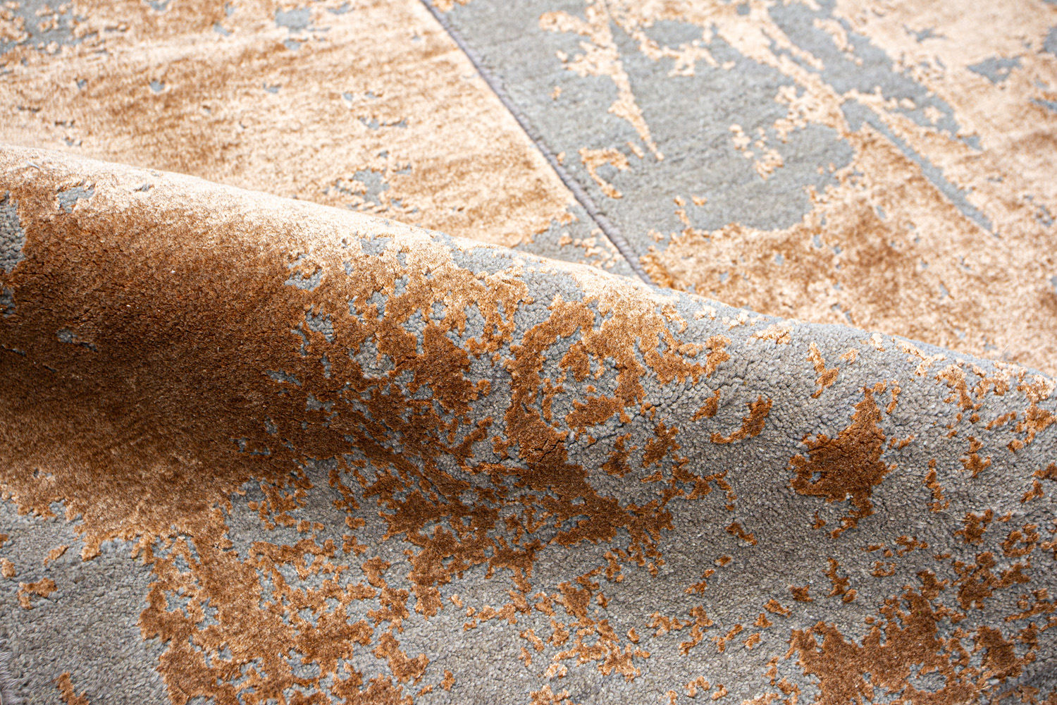 Дизайн ковров напоминает современные полотна художников-абстракционистов и производит столь же яркое и незабываемое впечатление в интерьере. Живописный эффект и необычная фактура зависят от выбора материала: натуральной шерсти, шёлка и от их сочетаний друг с другом. Ковры ткутся вручную в лучших мастерских Индии и Пакистана.