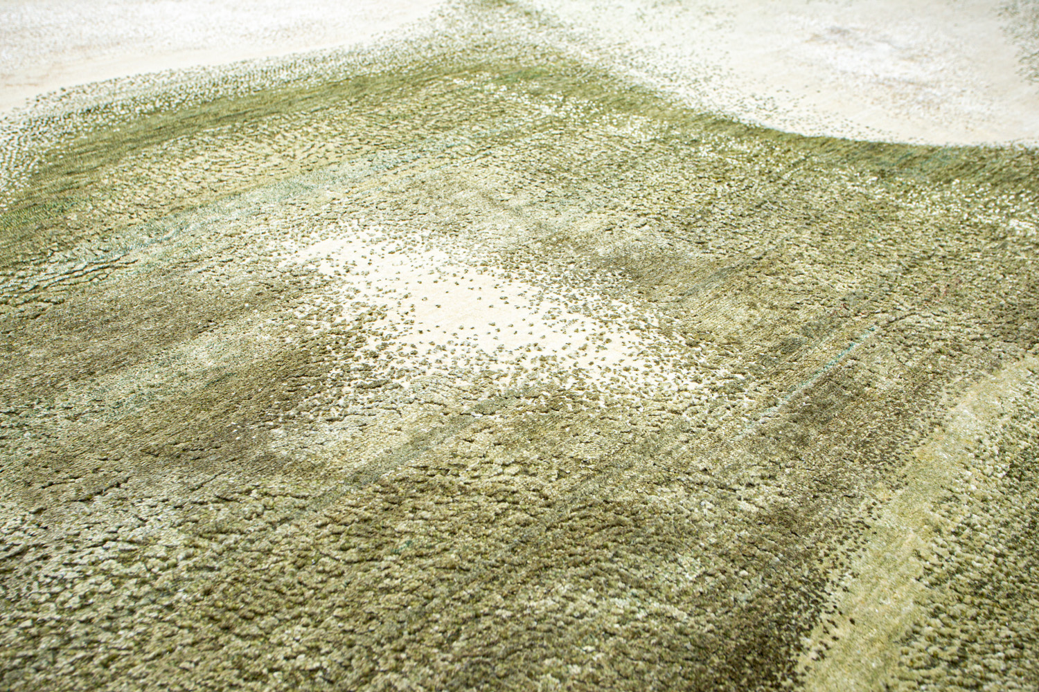 Дизайн ковров напоминает современные полотна художников-абстракционистов и производит столь же яркое и незабываемое впечатление в интерьере. Живописный эффект и необычная фактура зависят от выбора материала: натуральной шерсти, шёлка и от их сочетаний друг с другом. Ковры ткутся вручную в лучших мастерских Индии и Пакистана.
