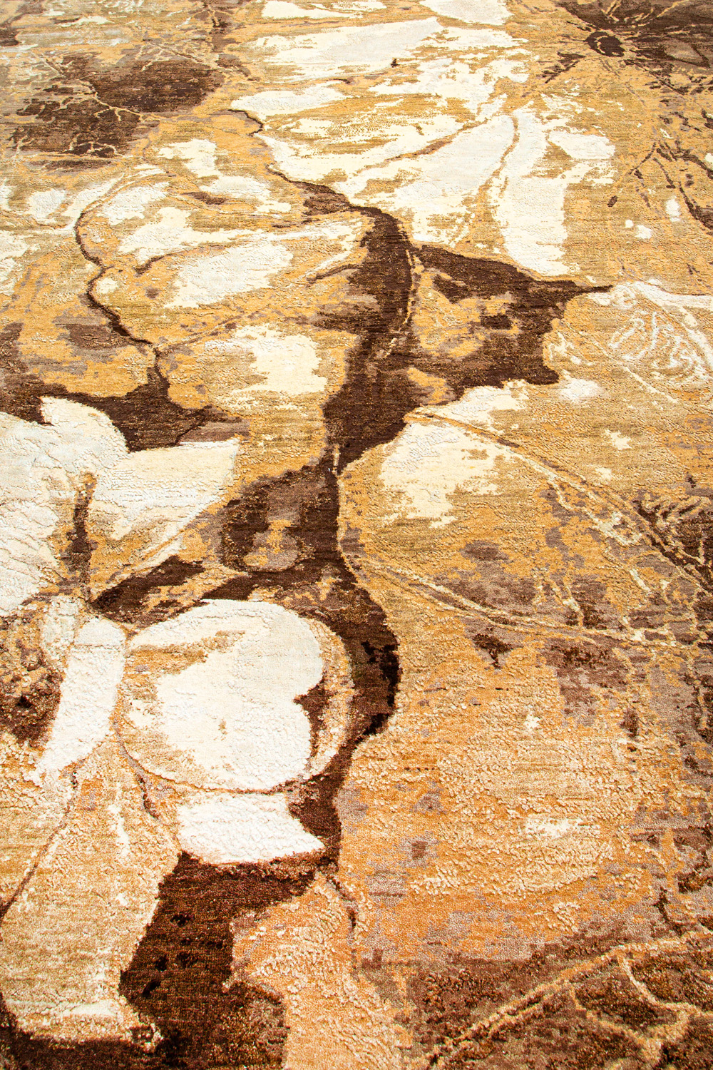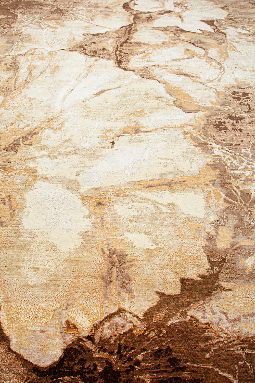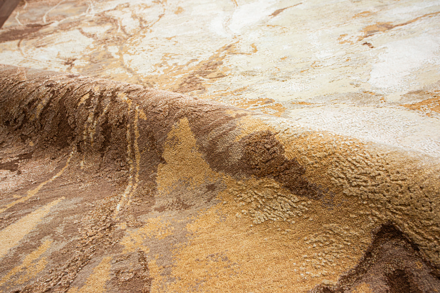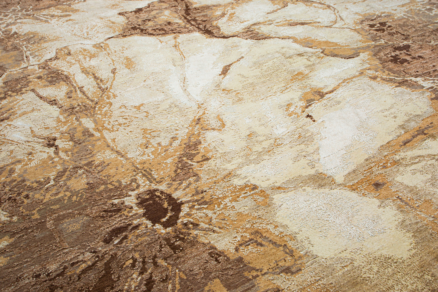 Дизайн ковров напоминает современные полотна художников-абстракционистов и производит столь же яркое и незабываемое впечатление в интерьере. Живописный эффект и необычная фактура зависят от выбора материала: натуральной шерсти, шёлка и от их сочетаний друг с другом. Ковры ткутся вручную в лучших мастерских Индии и Пакистана.