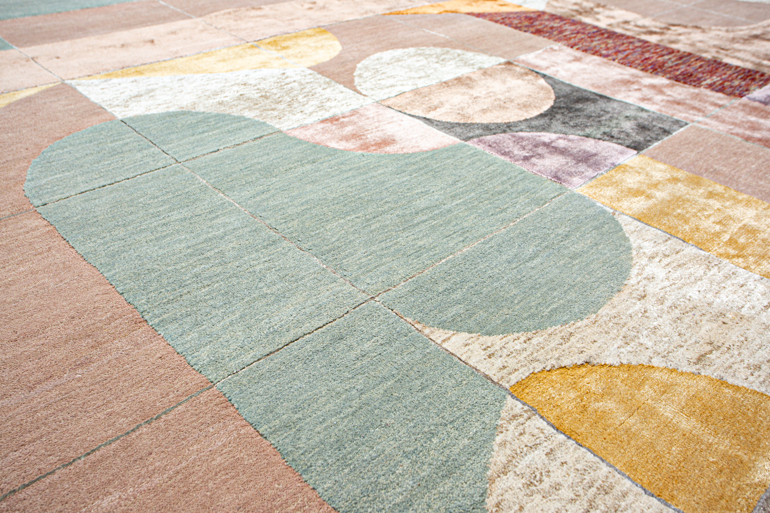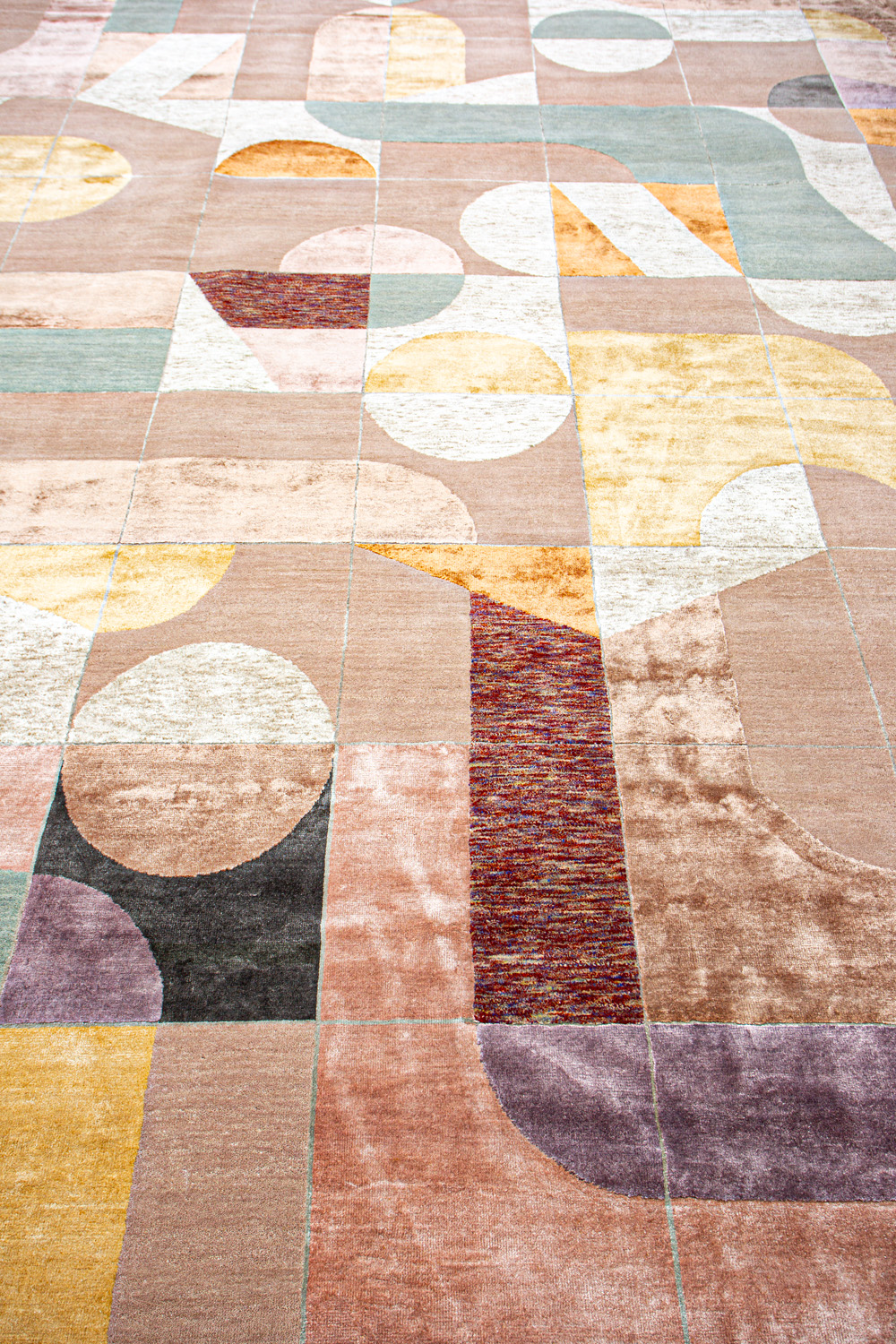 Крупные рисунки в виде линий и фигур на фактурной поверхности ковра превращаются в выразительные композиции. Они акцентируют на себе внимание и добавляют динамики в современный интерьер. Комбинации разных фигур и повторяющийся орнамент задают ритмическую основу пространству, привносят в него оригинальные оптические иллюзии.
