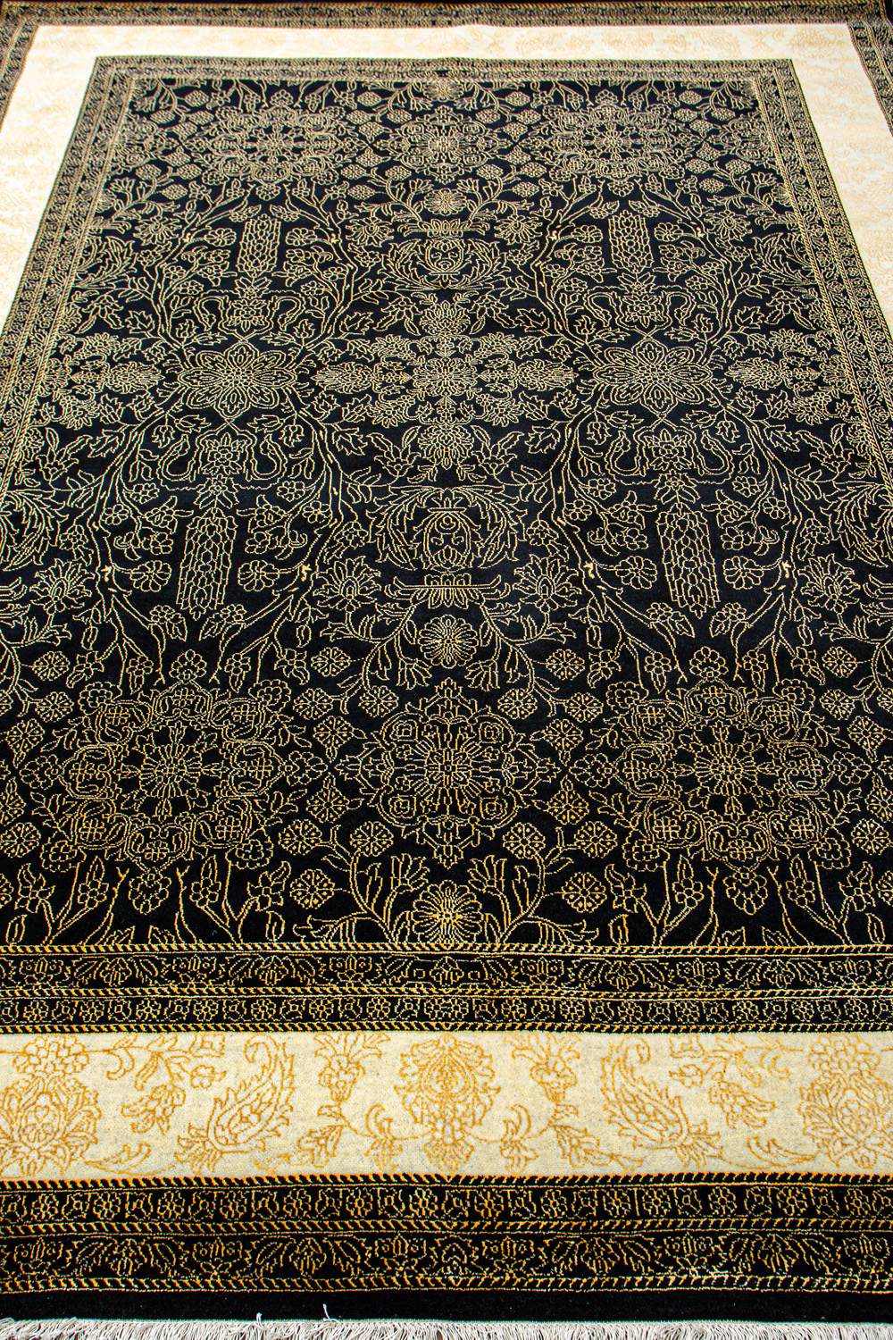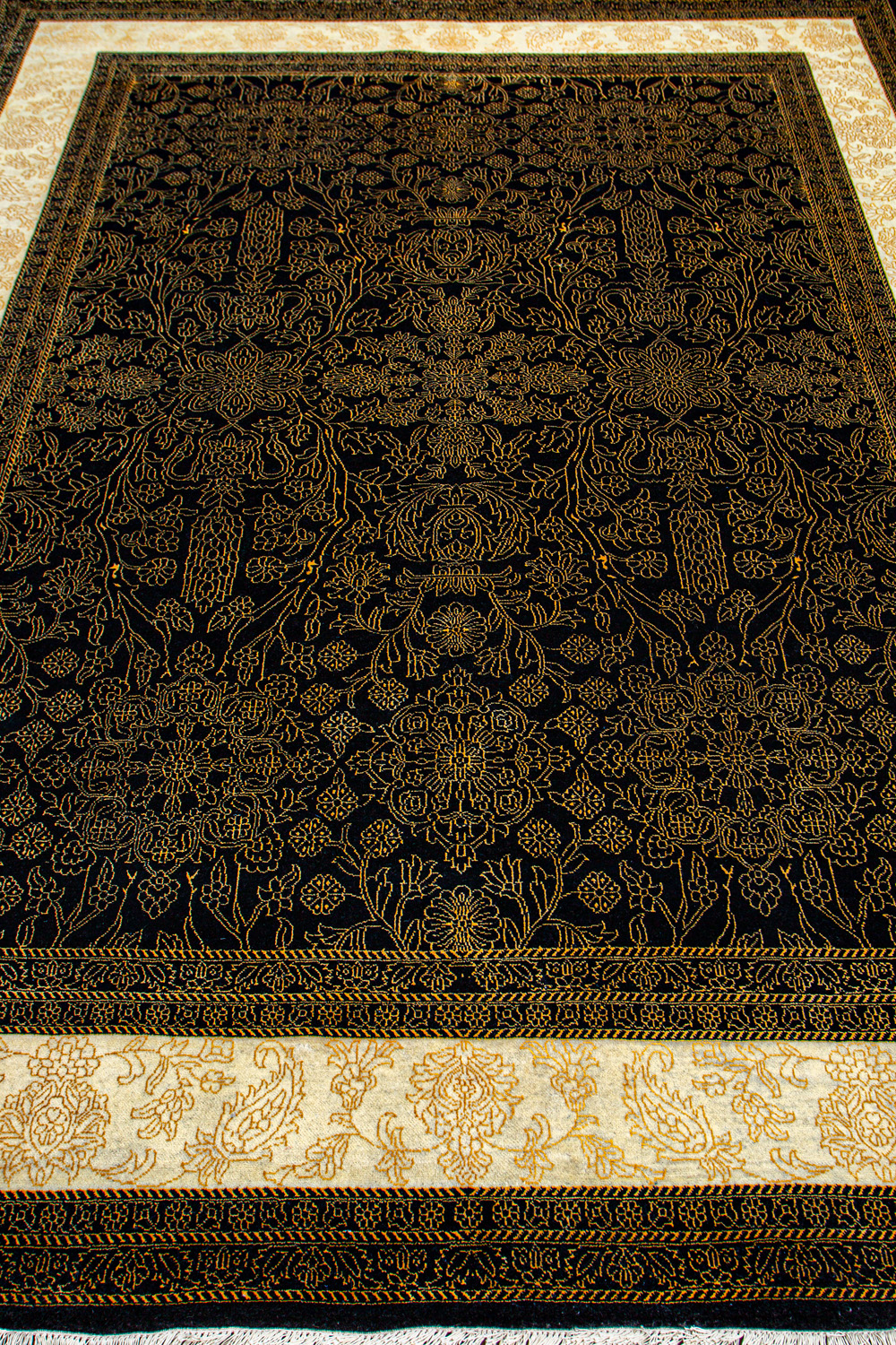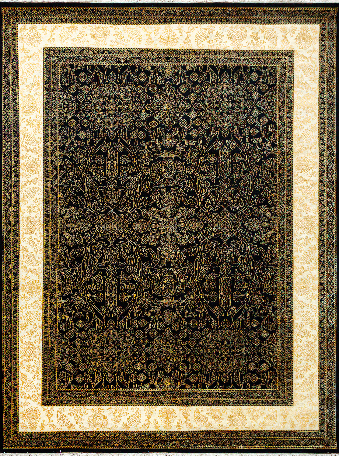 Более пяти веков назад в городе Агра зародилась знаменитая индийская школа ковроткачества, прославившаяся не меньше, чем расположенный здесь же Тадж-Махал. Мощное персидское влияние, помноженное на местный колорит, привело к появлению оригинальных орнаментов с богатыми растительными узорами — причудливым цветам, ветвям и листьям, разбросанным по всему полю ковра.