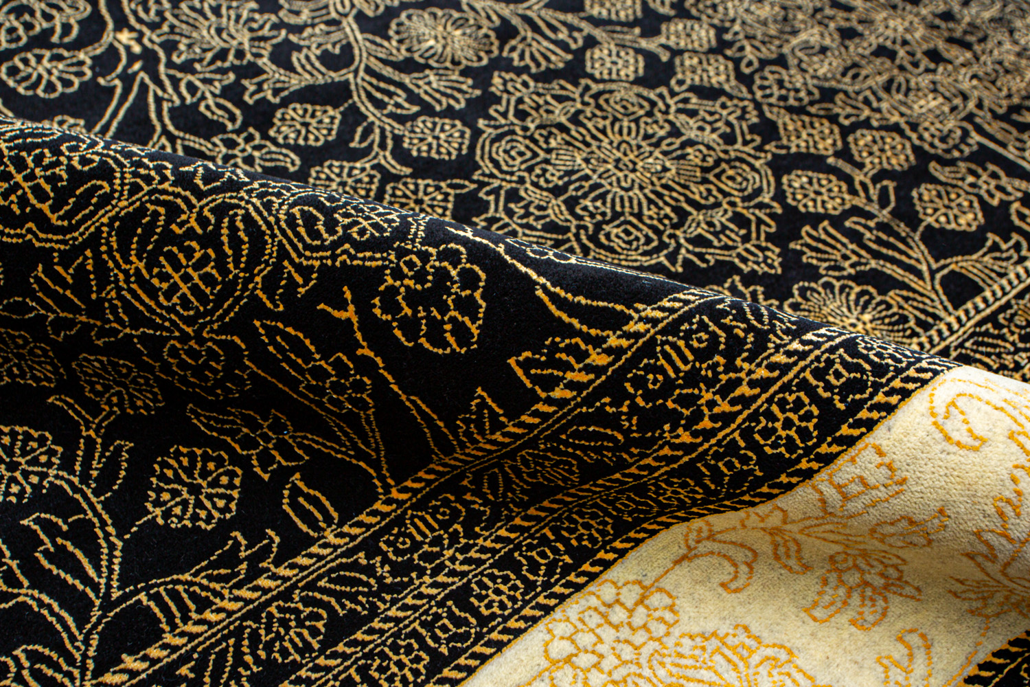 Каждый ковер в этой коллекции соткан вручную из шерсти и арт шёлка опытными индийскими мастерами.