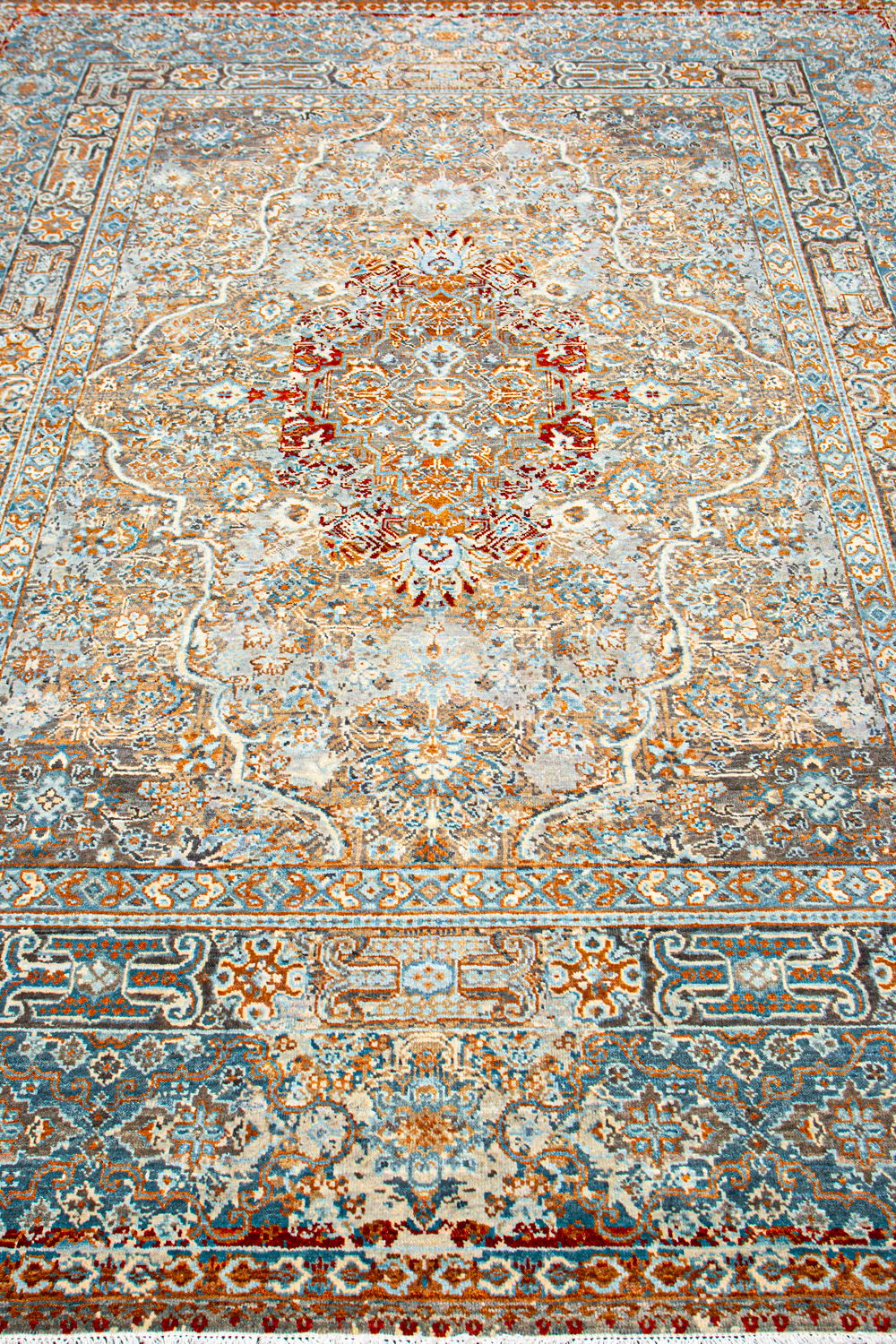 Родина этих ковров Индия и Пакистан. Чтобы создать такое произведение искусства у мастеров уходит от одного года до двух лет. Плотность ковров, в зависимости от размера, составляет от 150 000 до 400 000 узлов на квадратный метр.