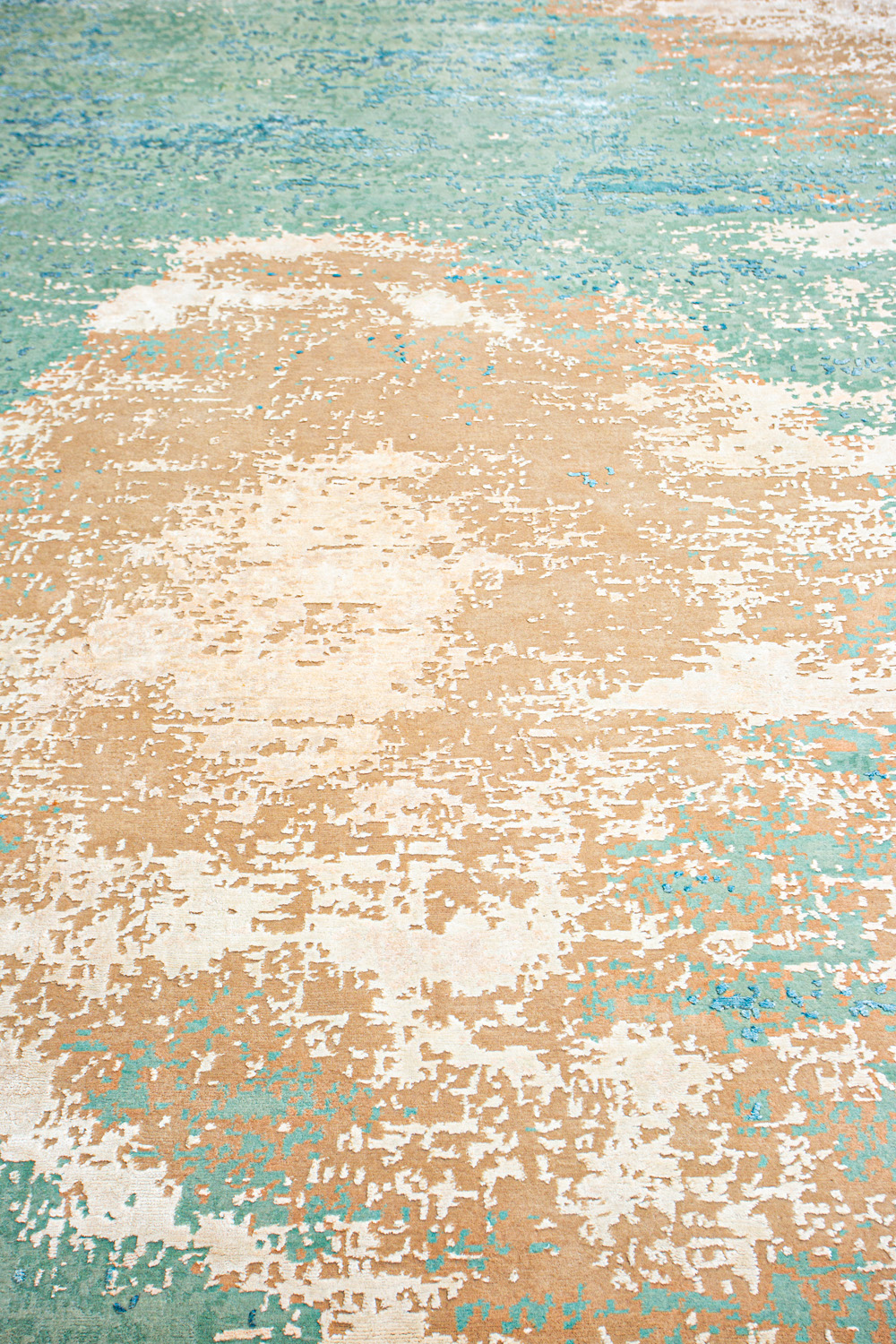 Дизайн ковров напоминает современные полотна художников-абстракционистов и производит столь же яркое и незабываемое впечатление в интерьере. Живописный эффект и необычная фактура зависят от выбора материала: натуральной шерсти, шёлка и от их сочетаний друг с другом. Ковры ткутся вручную в лучших мастерских Индии и Пакистана.