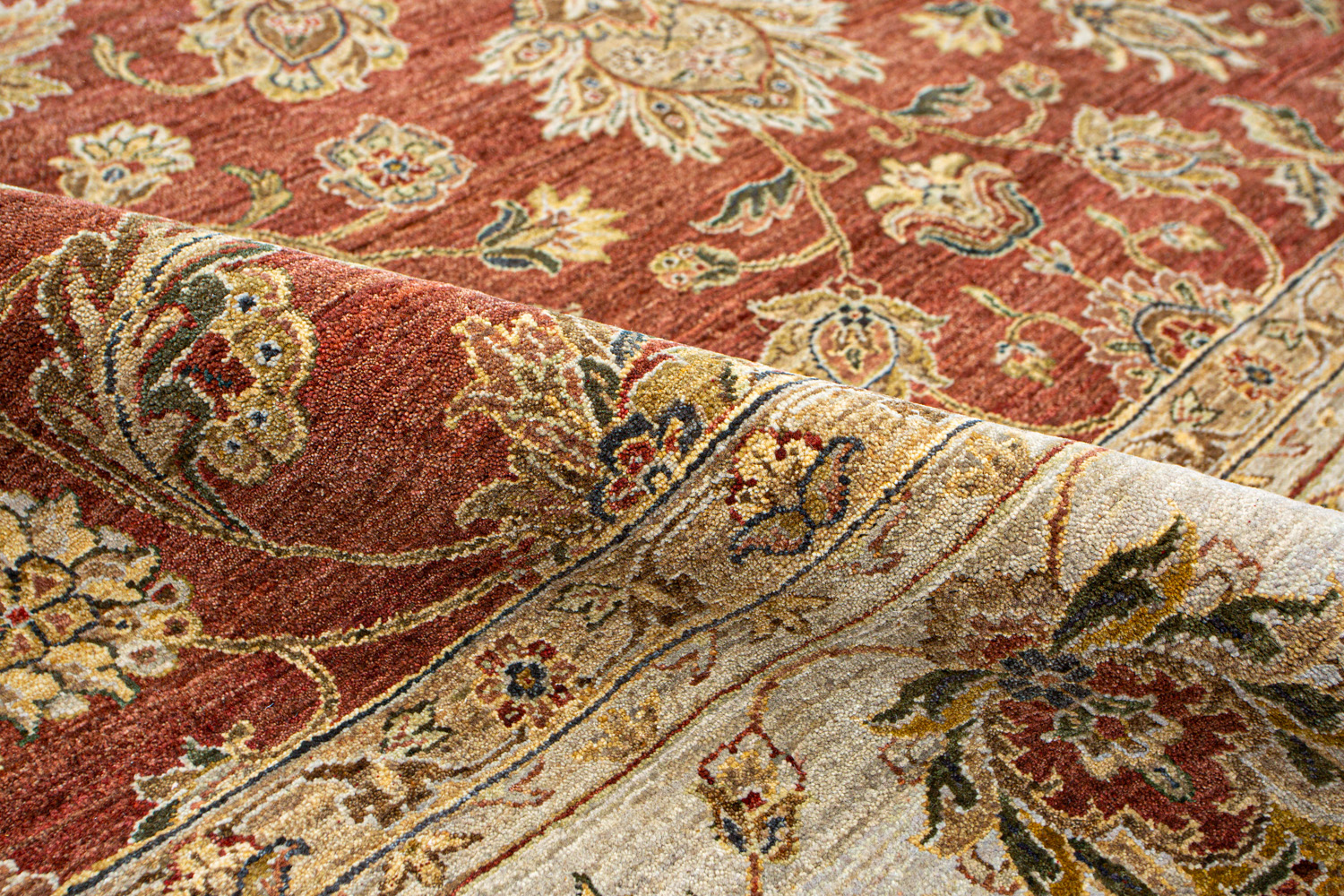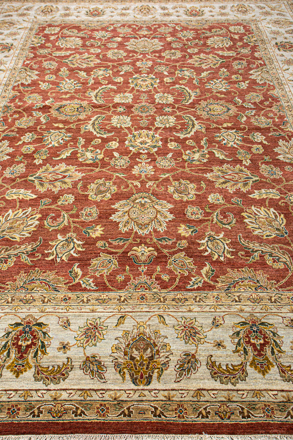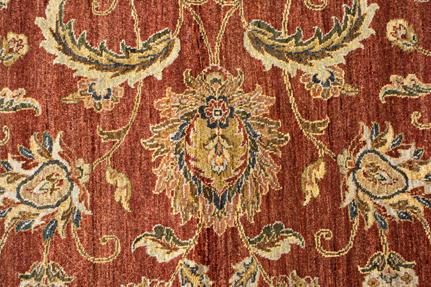 Более пяти веков назад в городе Агра зародилась знаменитая индийская школа ковроткачества, прославившаяся не меньше, чем расположенный здесь же Тадж-Махал. Мощное персидское влияние, помноженное на местный колорит, привело к появлению оригинальных орнаментов с богатыми растительными узорами — причудливым цветам, ветвям и листьям, разбросанным по всему полю ковра.