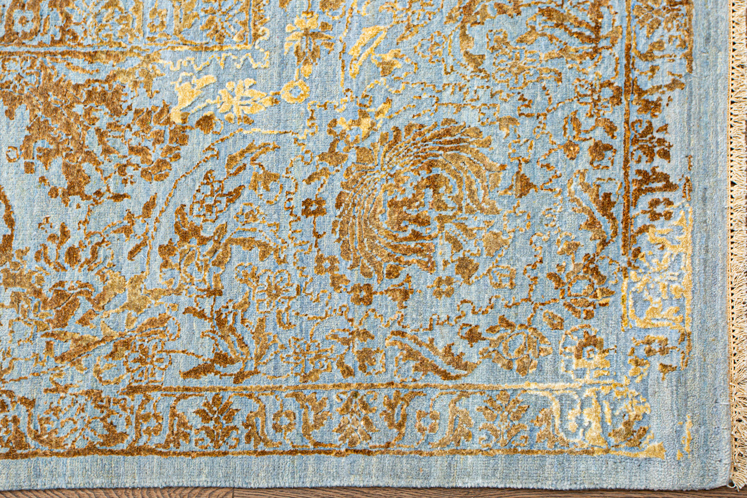 Родина этих ковров Индия. Чтобы создать такое произведение искусства у мастеров уходит от одного года до двух лет. Плотность ковров, в зависимости от размера, составляет от 250 000 до 400 000 узлов на квадратный метр.