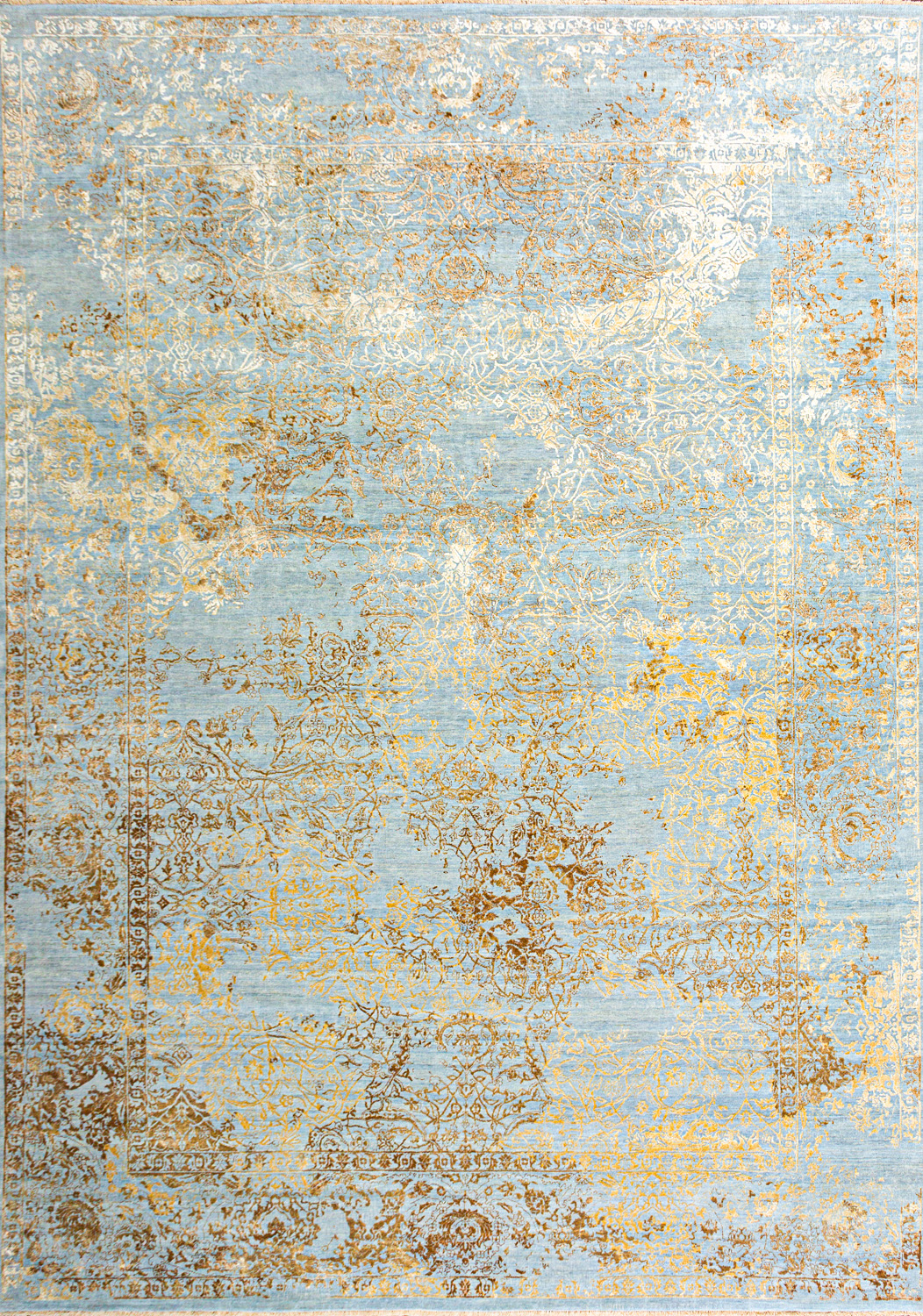 Время и природа — два главных стержня. Впечатление такое, что краски словно стёрлись, а если они и сохраняют яркость, то рисунок сохранился не весь, какие‑то фрагменты утрачены — такова типология этого столь актуального сегодня ковра ручной работы из коллекции illusion.