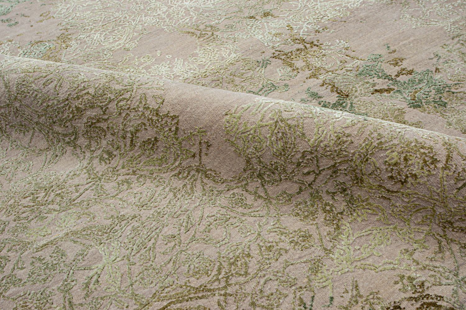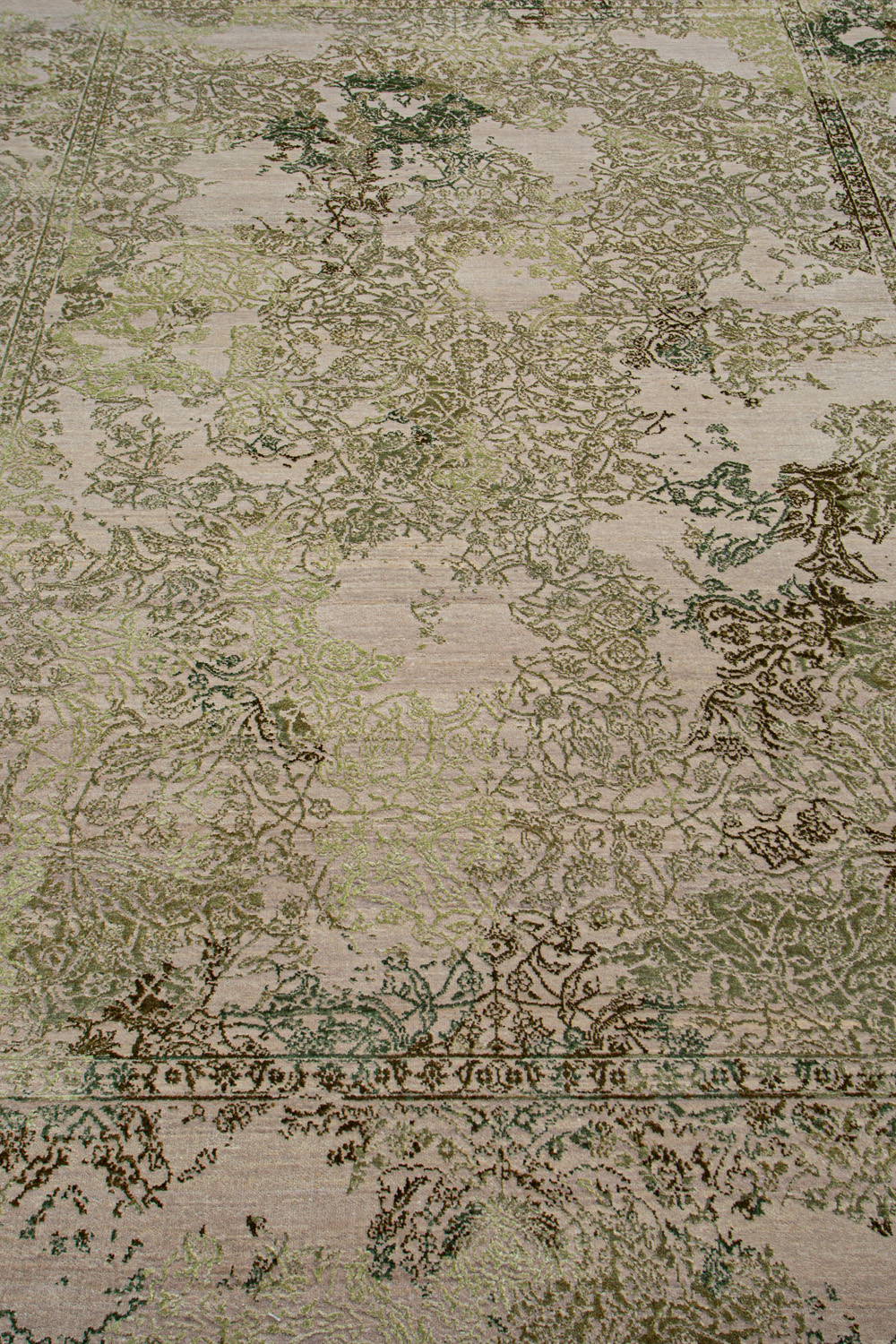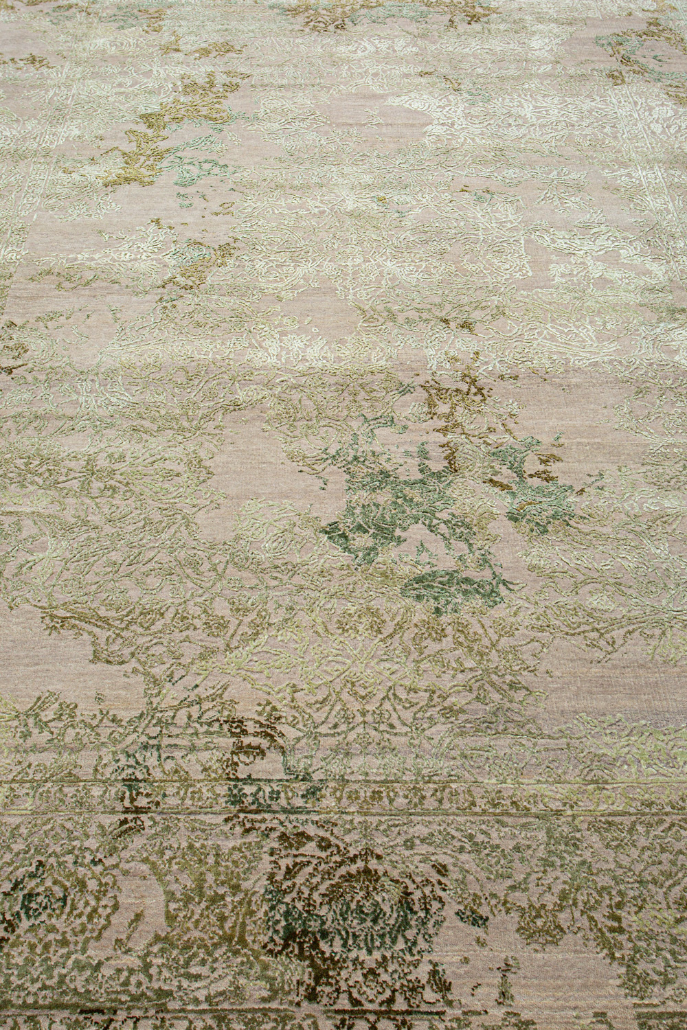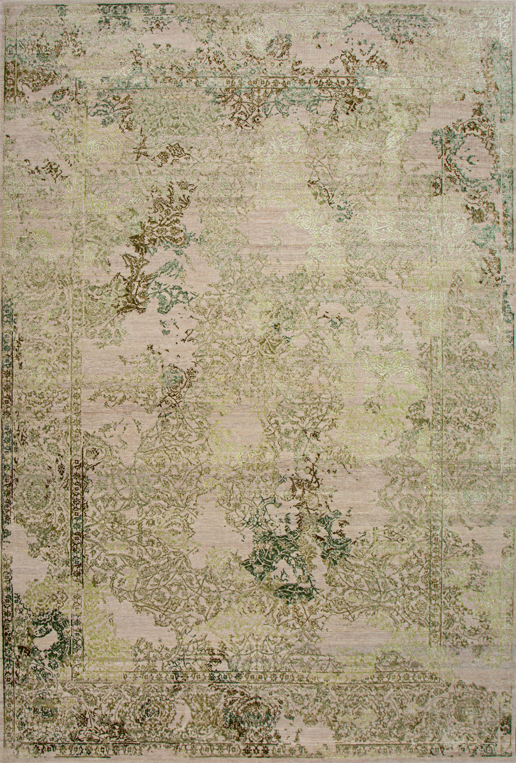 Время и природа — два главных стержня. Впечатление такое, что краски словно стёрлись, а если они и сохраняют яркость, то рисунок сохранился не весь, какие‑то фрагменты утрачены — такова типология этого столь актуального сегодня ковра ручной работы из коллекции illusion.