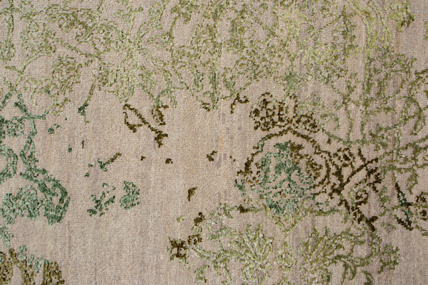 Такой эффект достигается за счет специальной техники плетения, а также обработки, которой подвергают ковры, чтобы они выглядели как антикварные — то есть дорого, элегантно и модно.