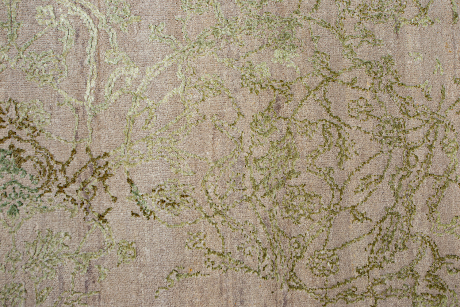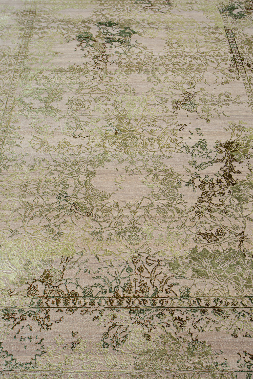 Время и природа — два главных стержня. Впечатление такое, что краски словно стёрлись, а если они и сохраняют яркость, то рисунок сохранился не весь, какие‑то фрагменты утрачены — такова типология этого столь актуального сегодня ковра ручной работы из коллекции illusion.