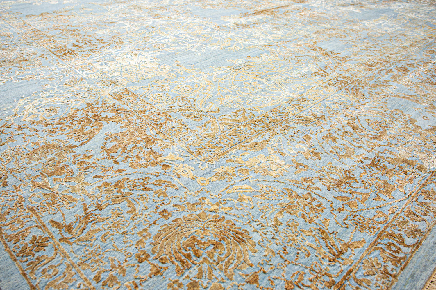 Такой эффект достигается за счет специальной техники плетения, а также обработки, которой подвергают ковры, чтобы они выглядели как антикварные — то есть дорого, элегантно и модно.