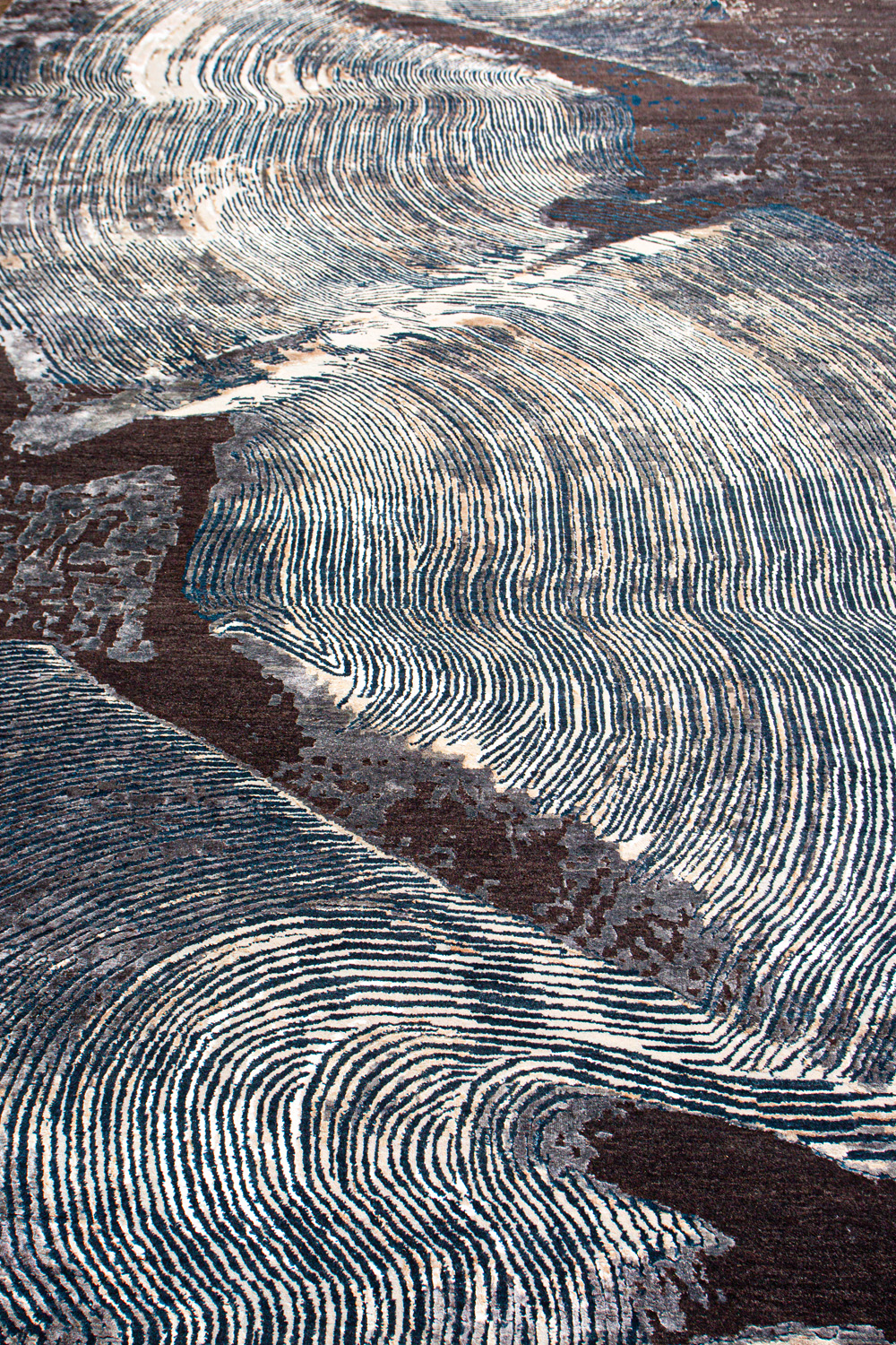 Дизайн ковров напоминает современные полотна художников-абстракционистов и производит столь же яркое и незабываемое впечатление в интерьере. Живописный эффект и необычная фактура зависят от выбора материала: натуральной шерсти, шёлка и от их сочетаний друг с другом. Ковры ткутся вручную в лучших мастерских Индии и Пакистана.