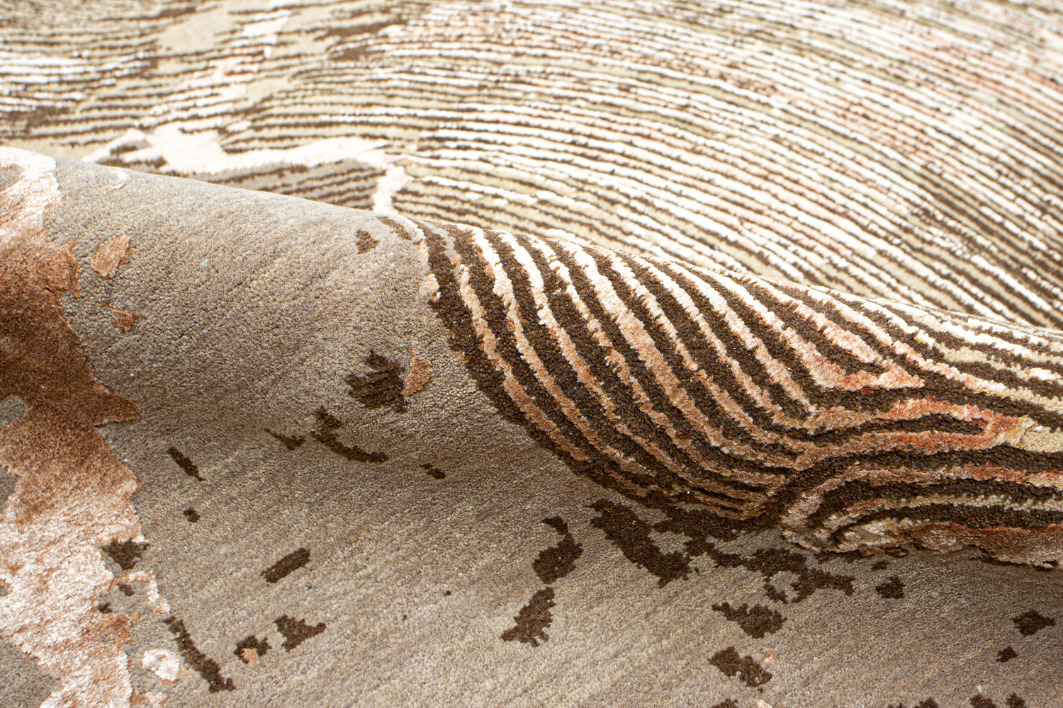 Дизайн ковров напоминает современные полотна художников-абстракционистов и производит столь же яркое и незабываемое впечатление в интерьере. Живописный эффект и необычная фактура зависят от выбора материала: натуральной шерсти, шёлка и от их сочетаний друг с другом. Ковры ткутся вручную в лучших мастерских Индии и Пакистана.