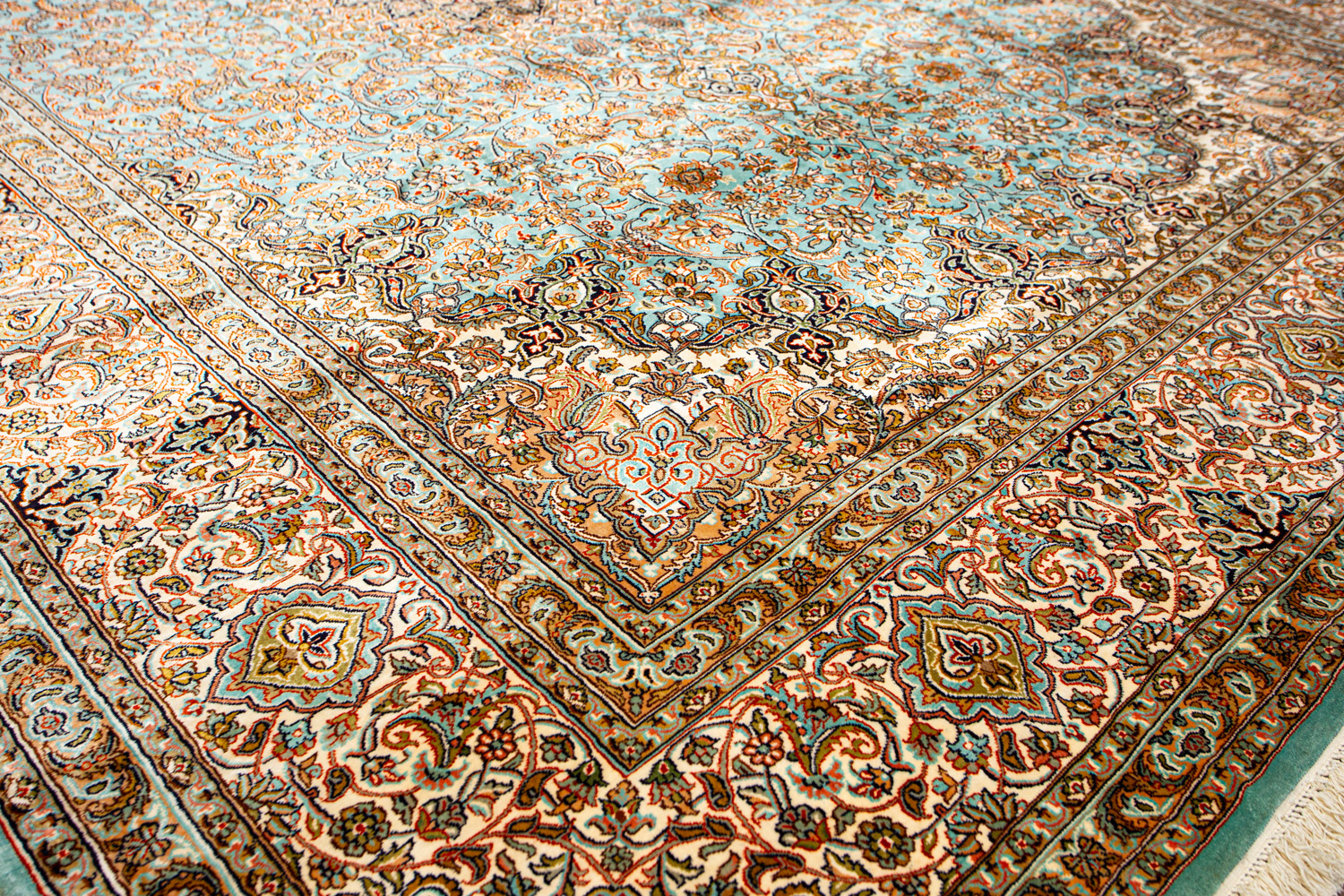 Ковры из коллекции Кашмир ткутся по традиционной технологии из нежнейшего кашмирского шелка. Лучшие произведения индийских мастеров отличает высокая узелковая плотность, прочность и яркость цветов.