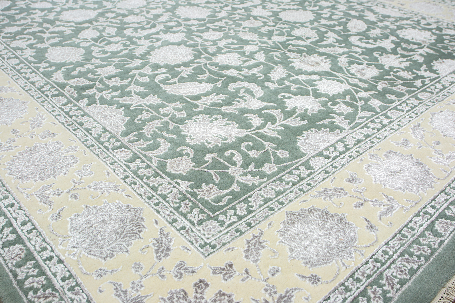 Каждый ковер в этой коллекции соткан вручную из шерсти и арт шёлка опытными индийскими мастерами.