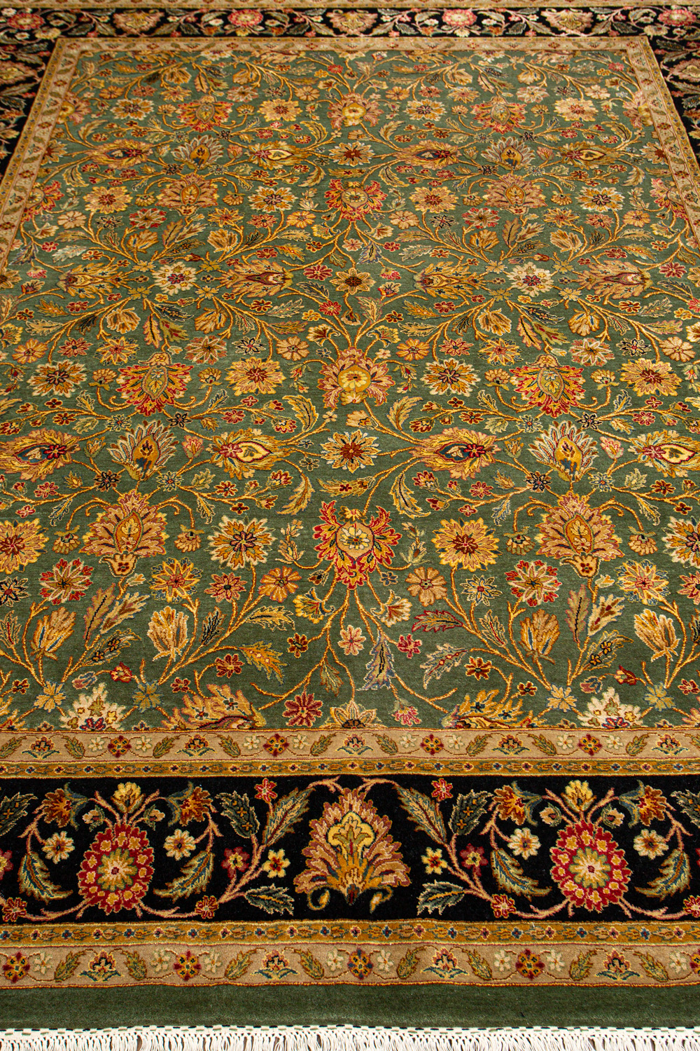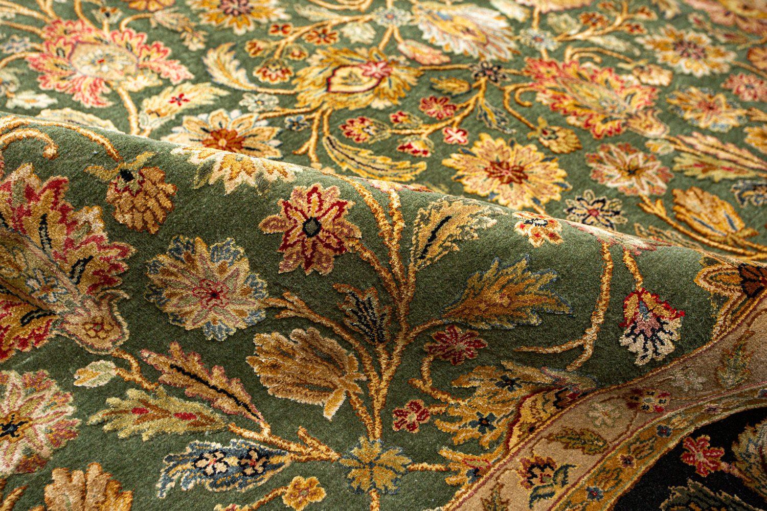 Более пяти веков назад в городе Агра зародилась знаменитая индийская школа ковроткачества, прославившаяся не меньше, чем расположенный здесь же Тадж-Махал. Мощное персидское влияние, помноженное на местный колорит, привело к появлению оригинальных орнаментов с богатыми растительными узорами — причудливым цветам, ветвям и листьям, разбросанным по всему полю ковра.