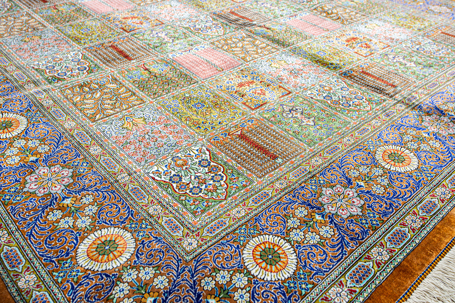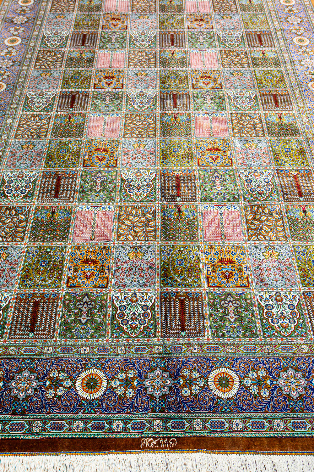 Шёлковая нить гибкая и прочная, поэтому ковры из этого материала считаются самыми износостойкими, а по количеству цветов в одном узоре ковры из коллекции Кум, пожалуй, остаются непревзойдёнными.