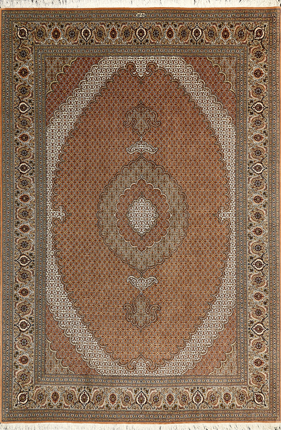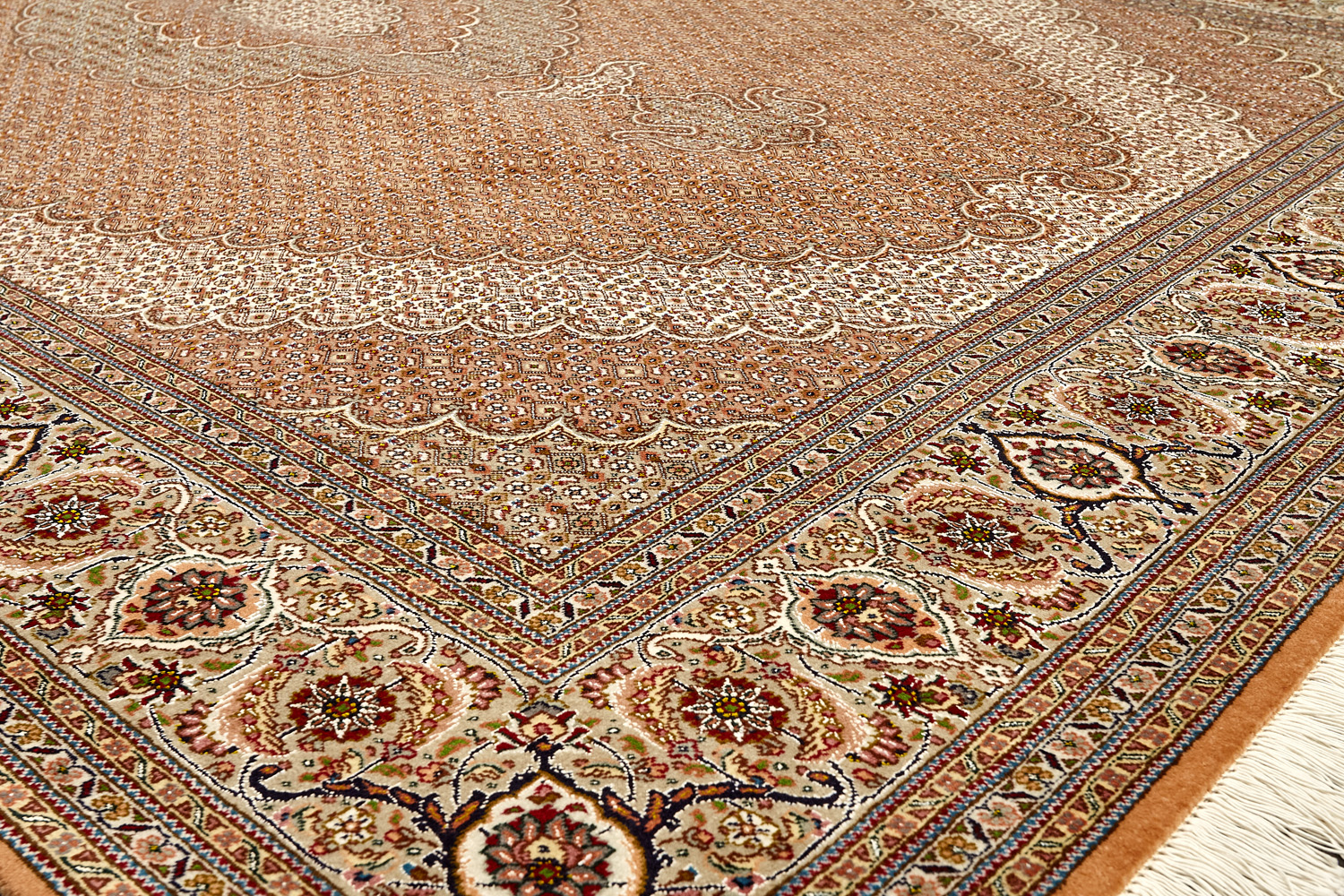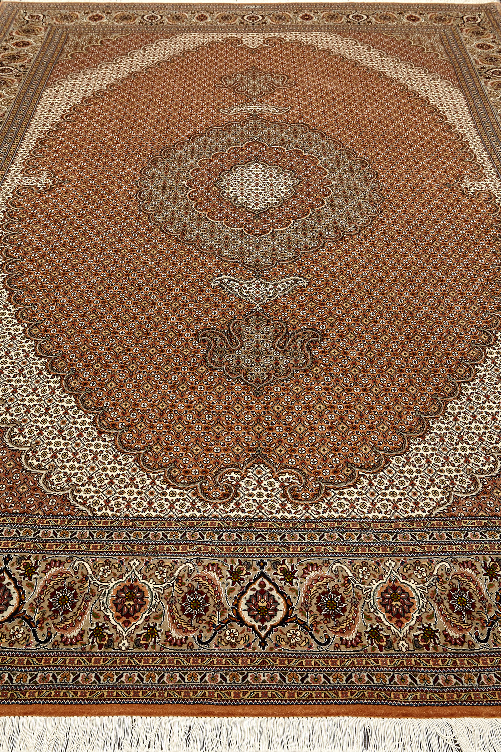 Рассыпанные по всему полю цветы, медальоны и «рыбная чешуя» — основные мотивы в дизайне ковров из коллекции Тебриз, а светлые тона и спокойные пастельные оттенки — основная цветовая палитра.