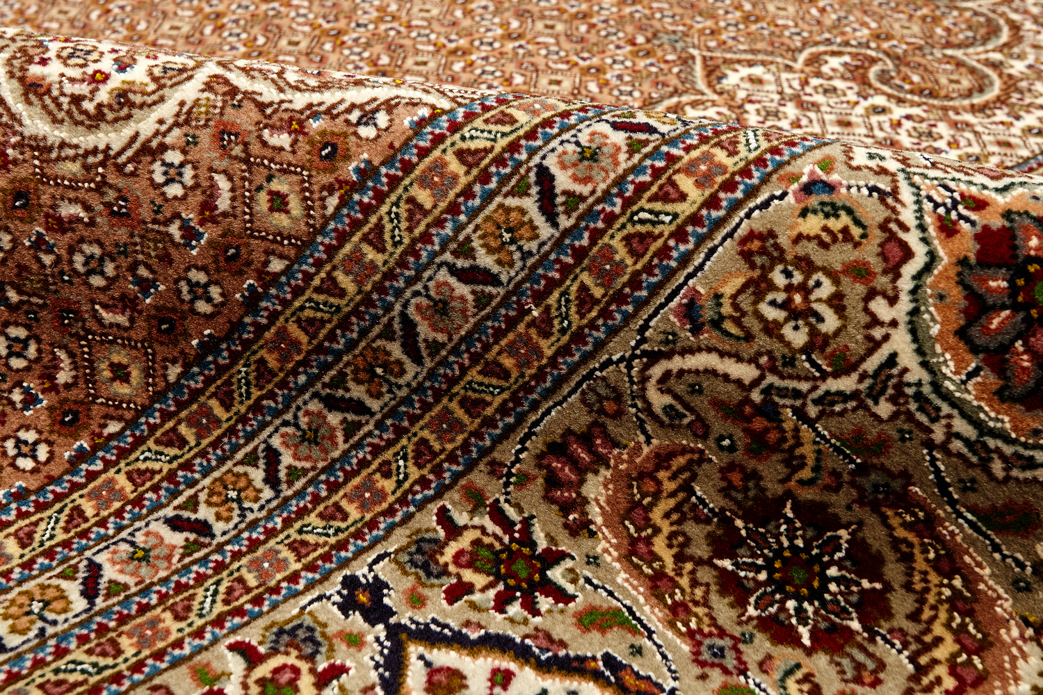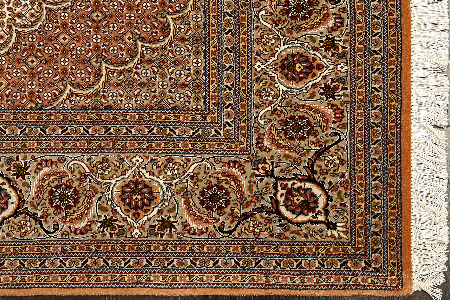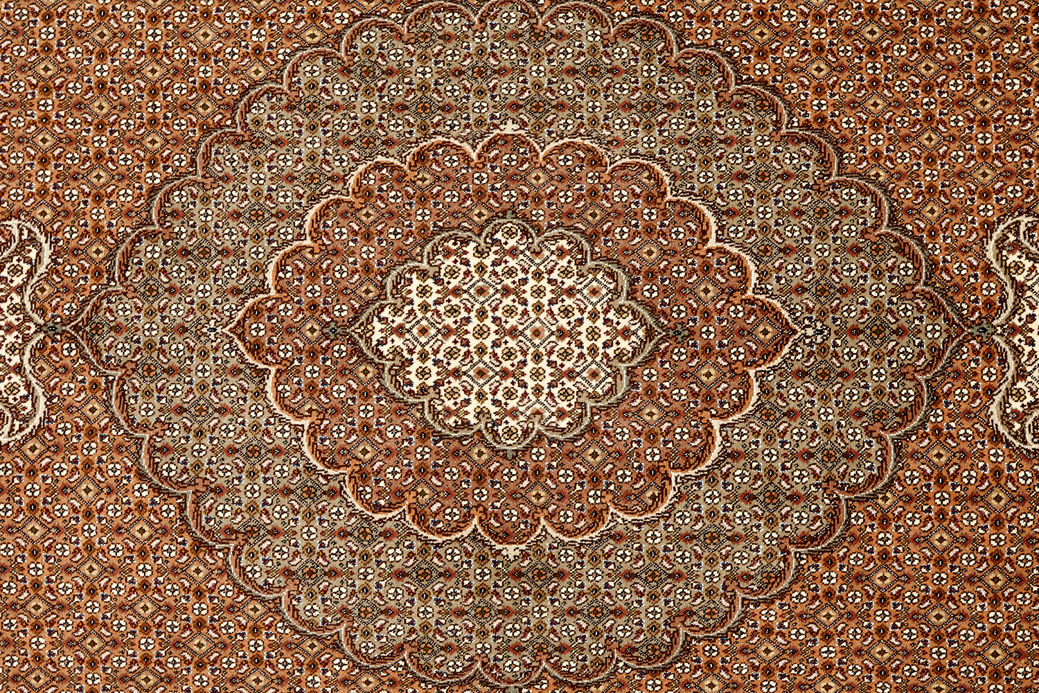 Рассыпанные по всему полю цветы, медальоны и «рыбная чешуя» — основные мотивы в дизайне ковров из коллекции Тебриз, а светлые тона и спокойные пастельные оттенки — основная цветовая палитра.