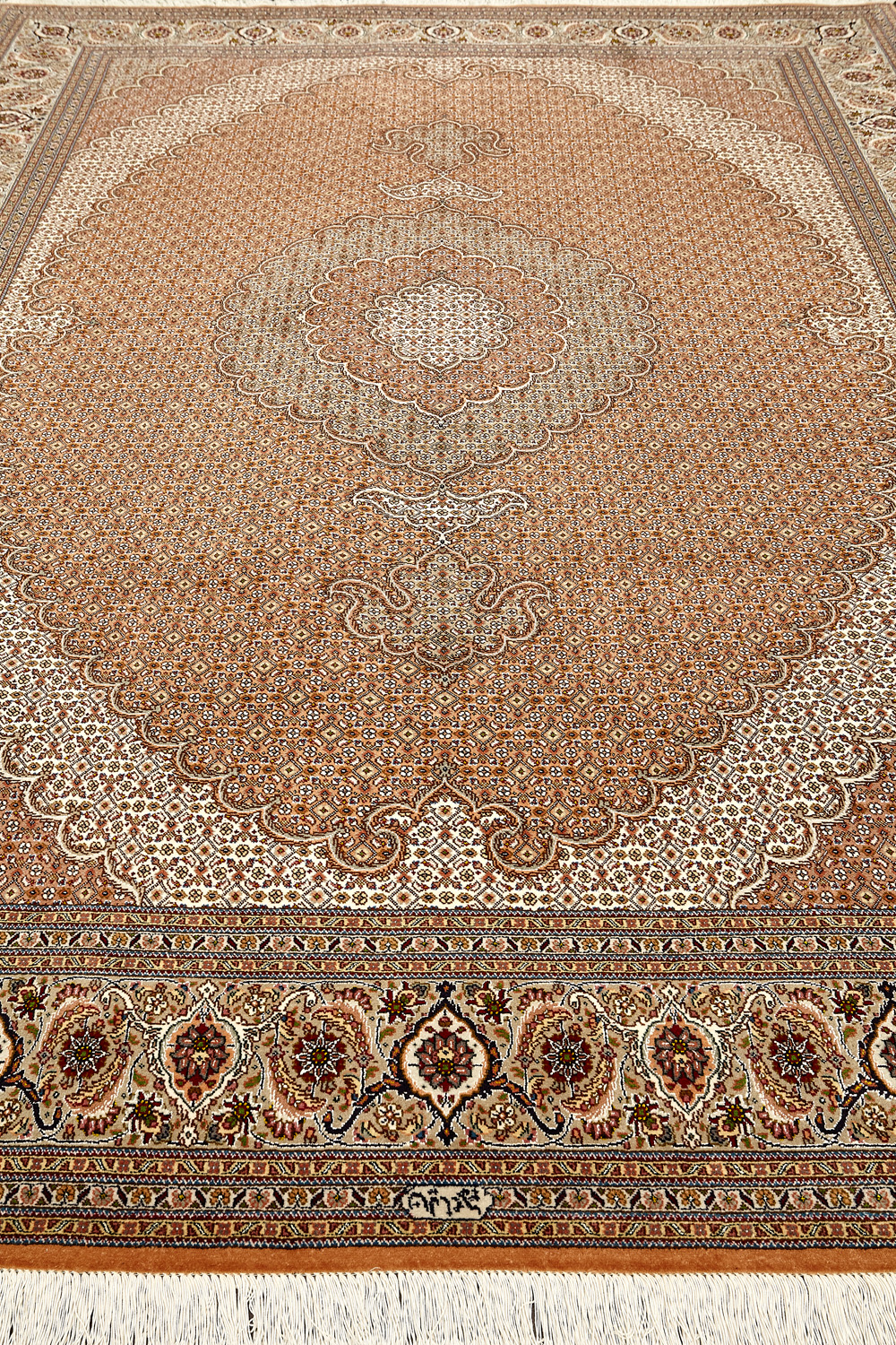 Ковры ткутся из шерсти и шёлка лучшими мастерами Ирана несколько лет, ведь обладают высочайшей плотностью для подобного состава ворса в 600 тысяч узлов на квадратный метр.