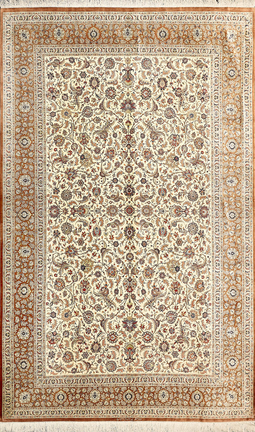 Шёлковая нить гибкая и прочная, поэтому ковры из этого материала считаются самыми износостойкими, а по количеству цветов в одном узоре ковры из коллекции Кум, пожалуй, остаются непревзойдёнными.