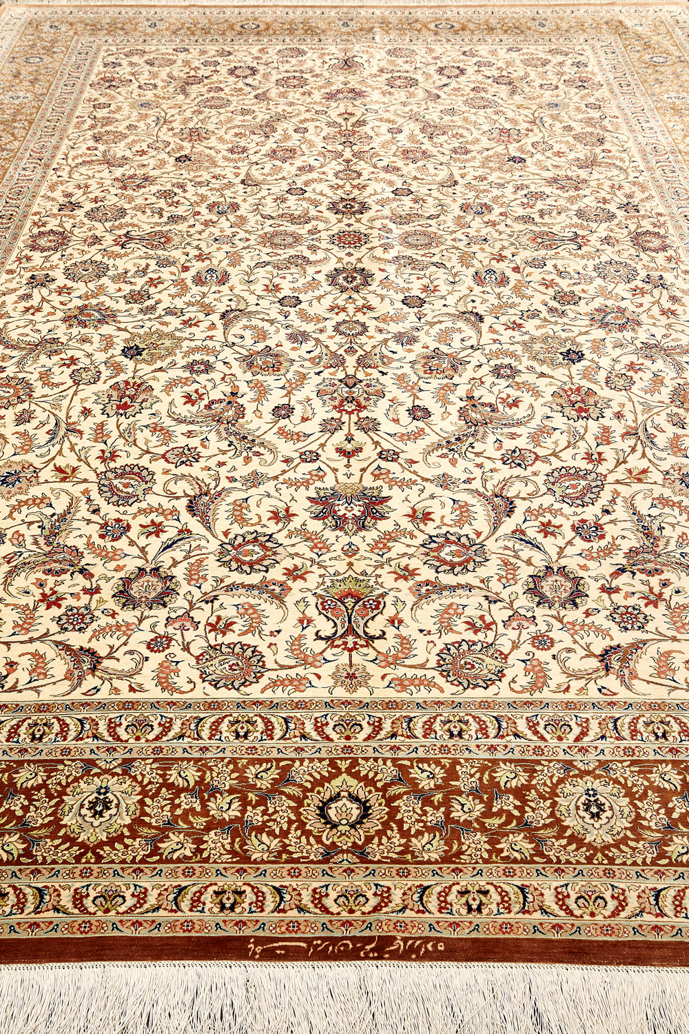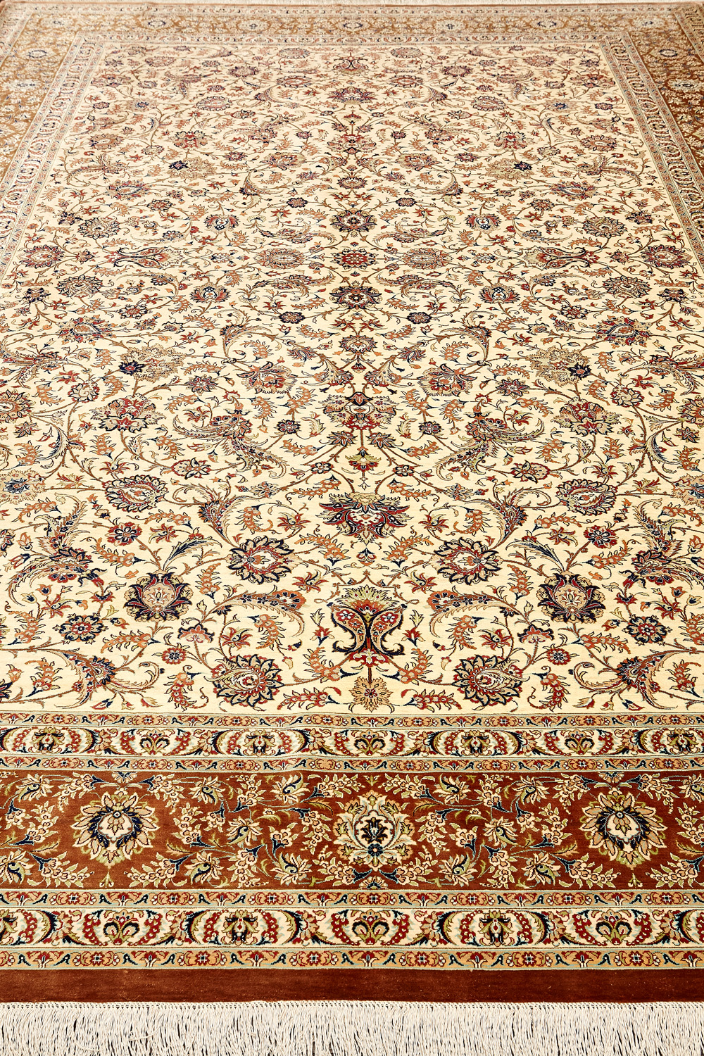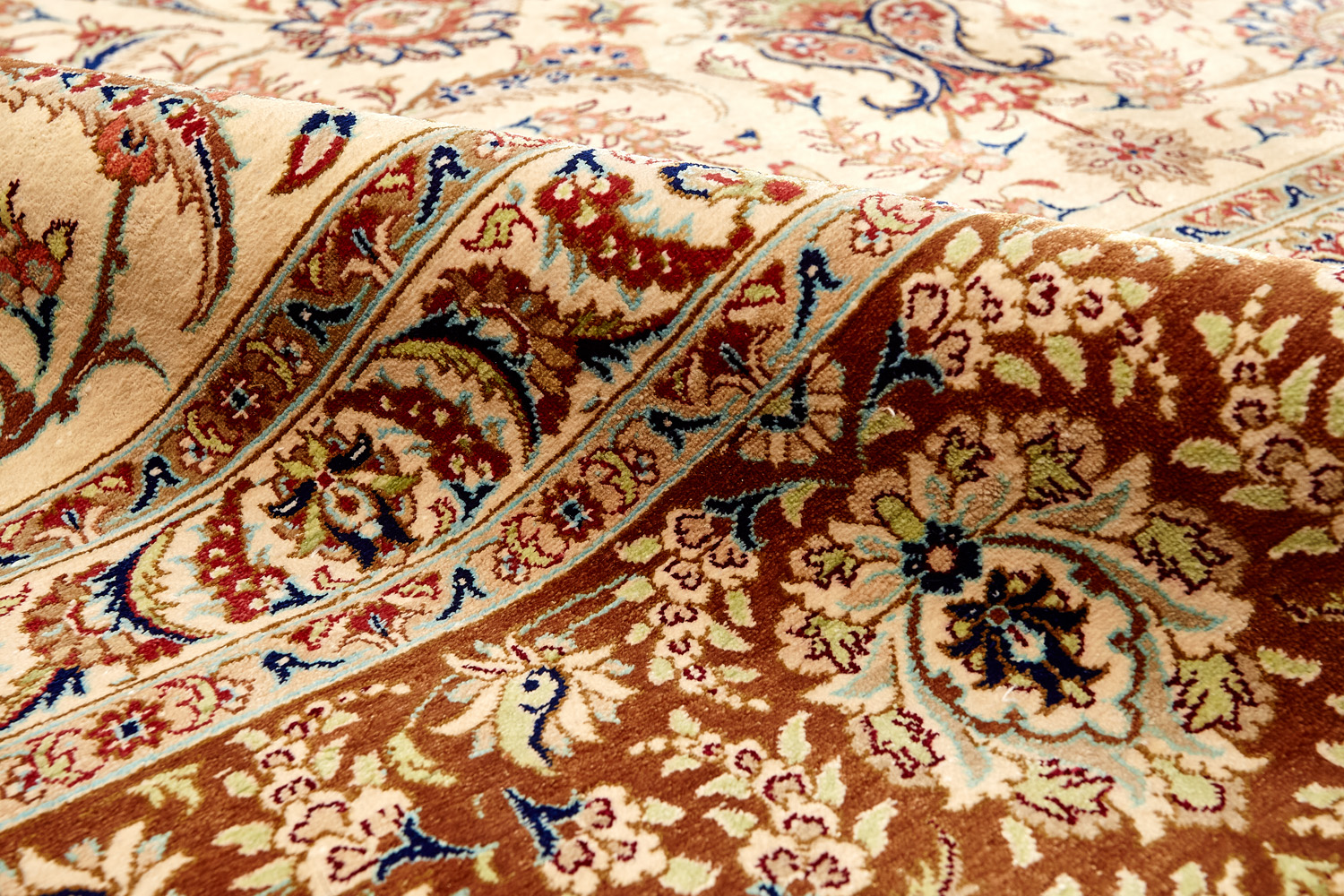 Детальные орнаменты, множество насыщенных оттенков, мягкость и нежность переливающегося шёлка стали отличительными чертами прекрасных ковров и обеспечили им мировую известность.