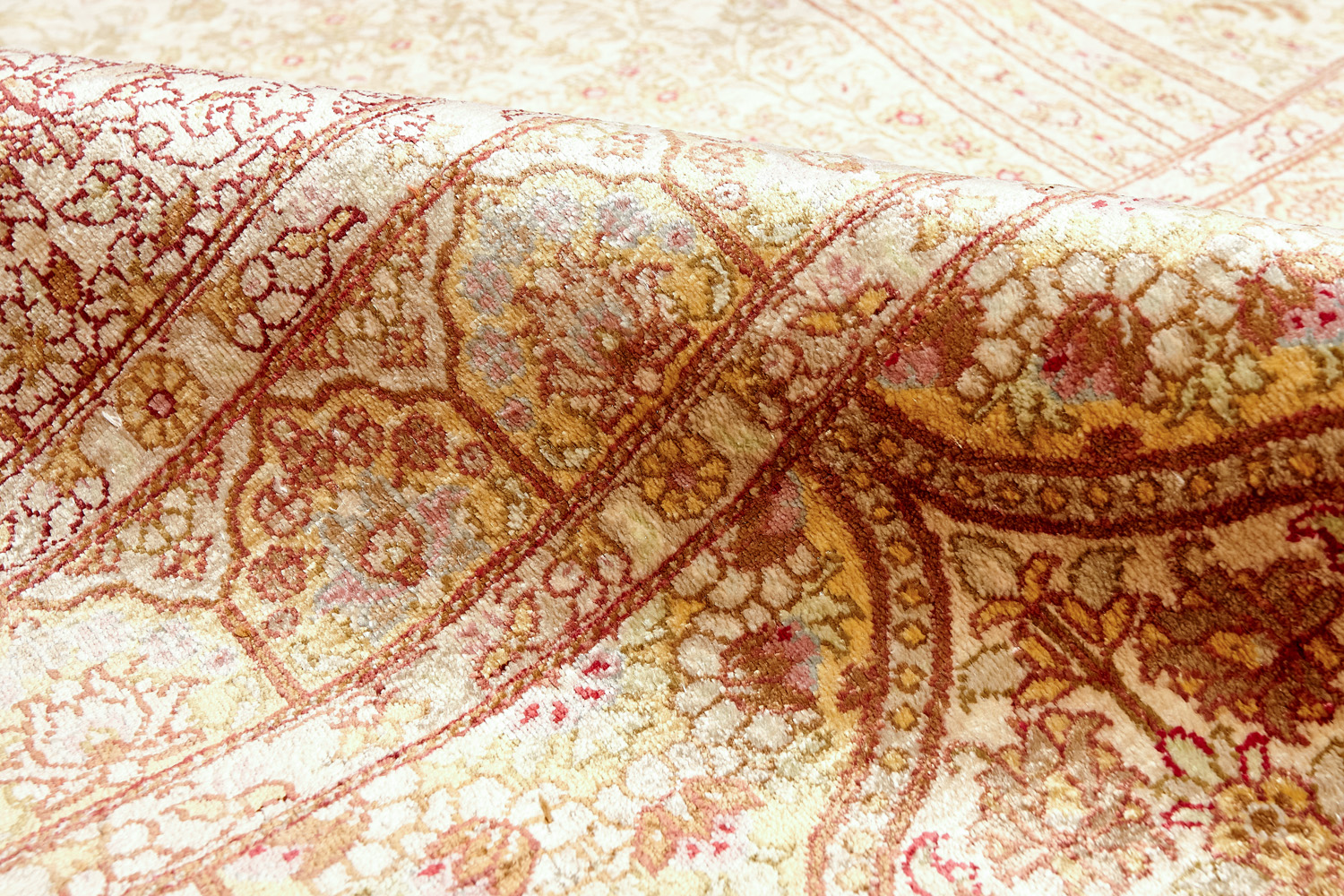 Шёлковая нить гибкая и прочная, поэтому ковры из этого материала считаются самыми износостойкими, а по количеству цветов в одном узоре ковры из коллекции Кум, пожалуй, остаются непревзойдёнными.