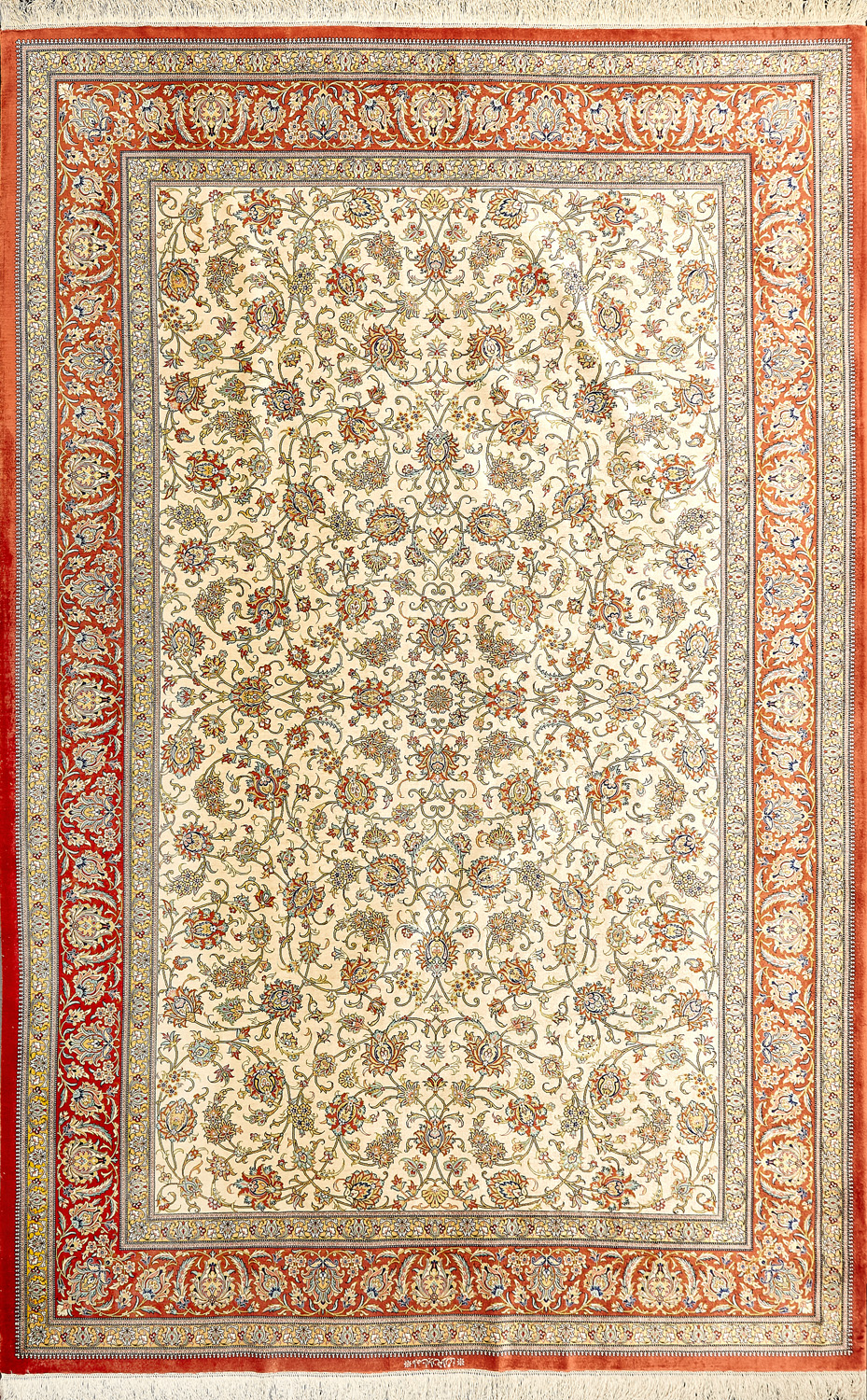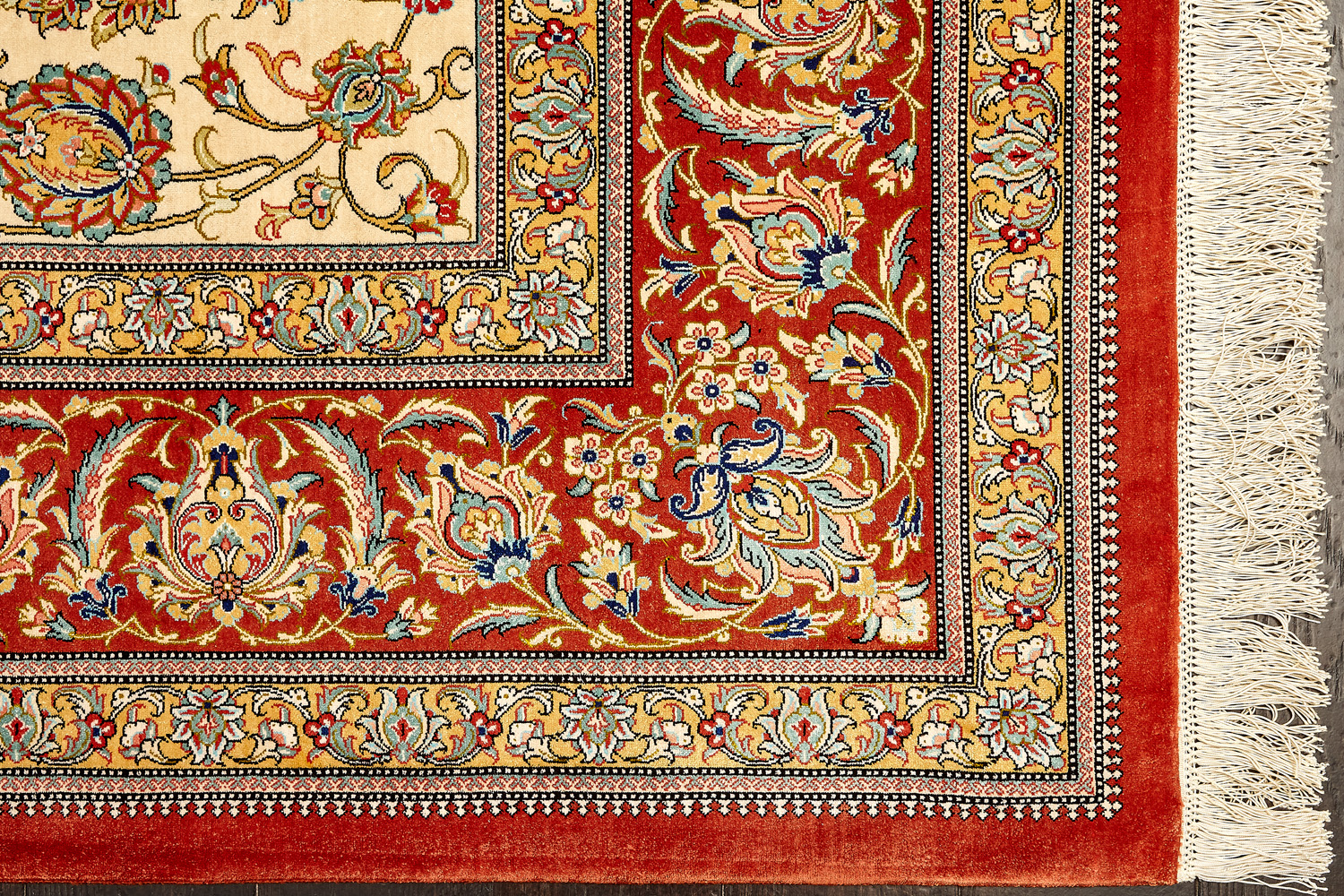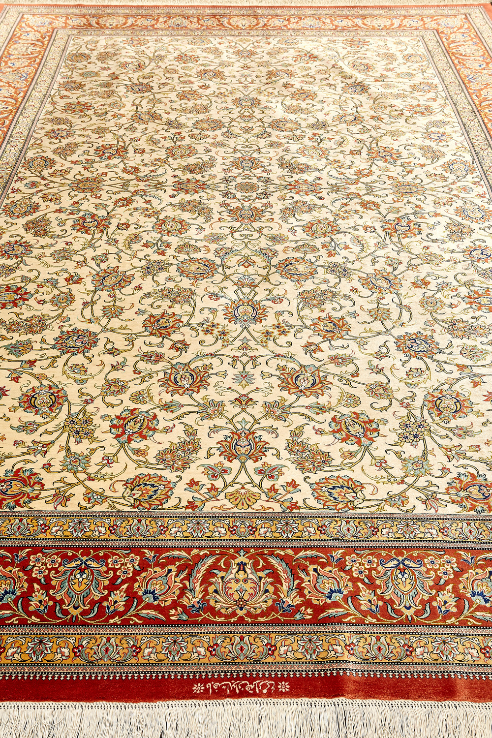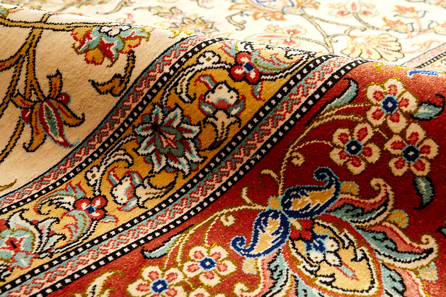 Шёлковая нить гибкая и прочная, поэтому ковры из этого материала считаются самыми износостойкими, а по количеству цветов в одном узоре ковры из коллекции Кум, пожалуй, остаются непревзойдёнными.