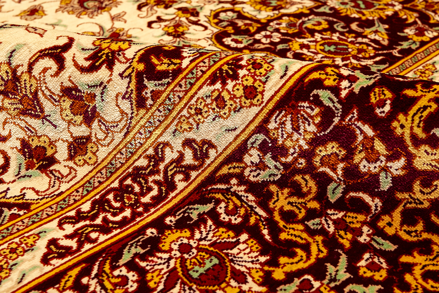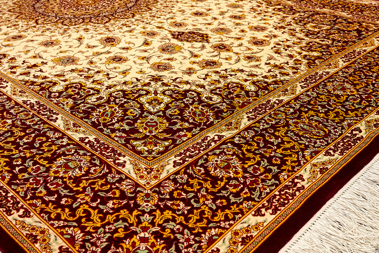 Детальные орнаменты, множество насыщенных оттенков, мягкость и нежность переливающегося шёлка стали отличительными чертами прекрасных ковров и обеспечили им мировую известность.