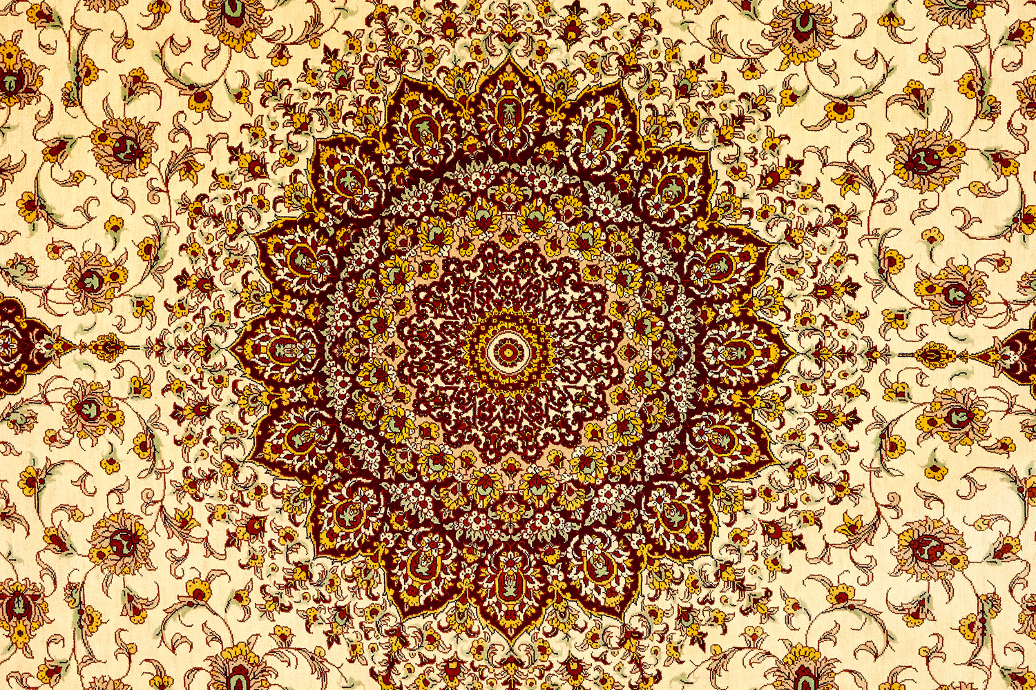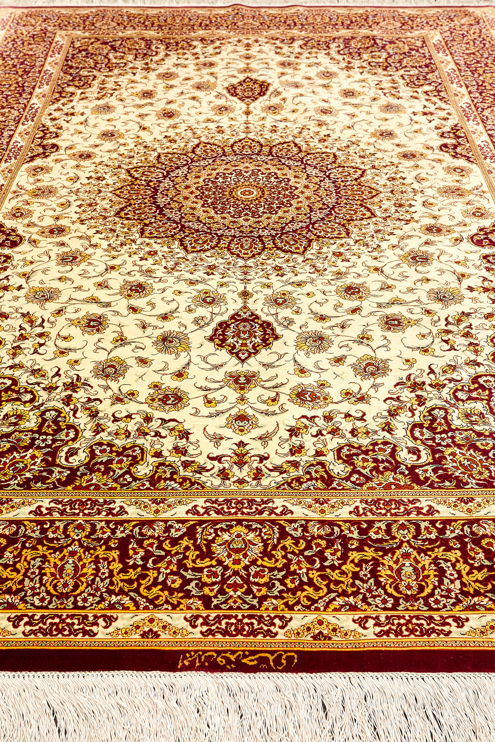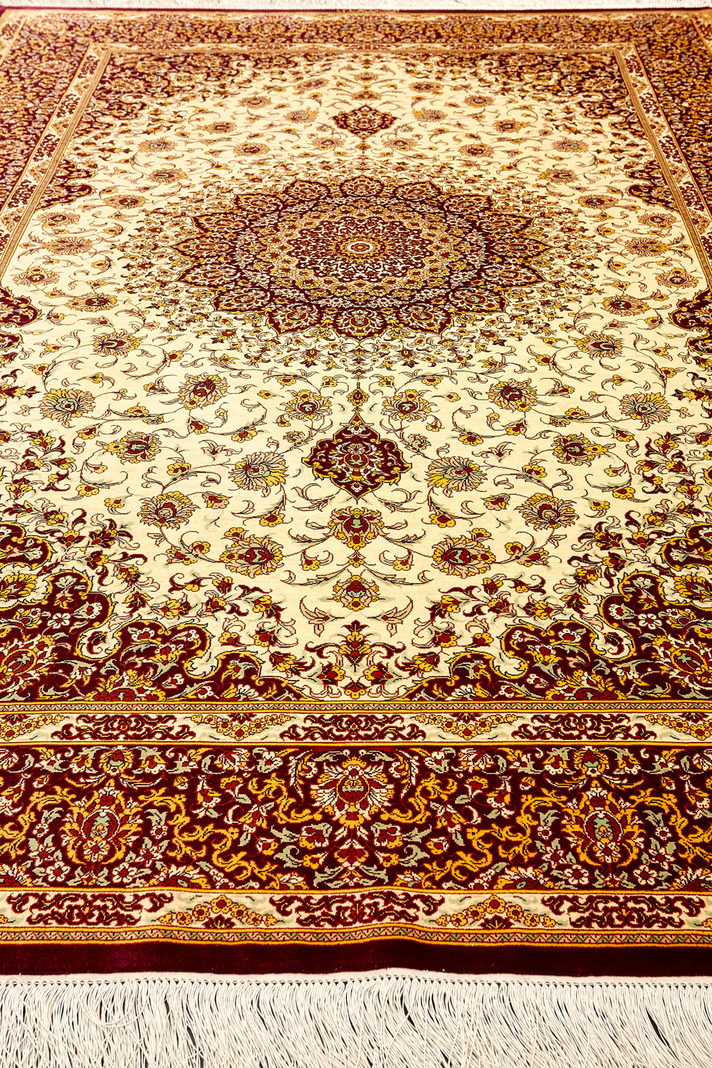 Шёлковая нить гибкая и прочная, поэтому ковры из этого материала считаются самыми износостойкими, а по количеству цветов в одном узоре ковры из коллекции Кум, пожалуй, остаются непревзойдёнными.