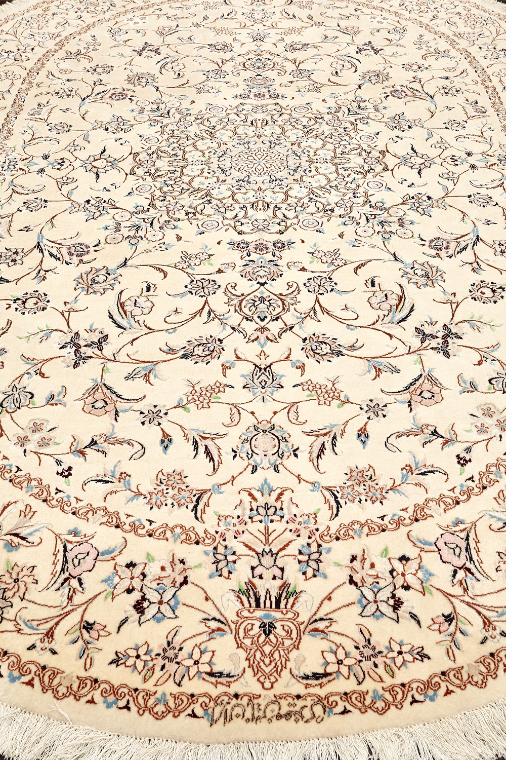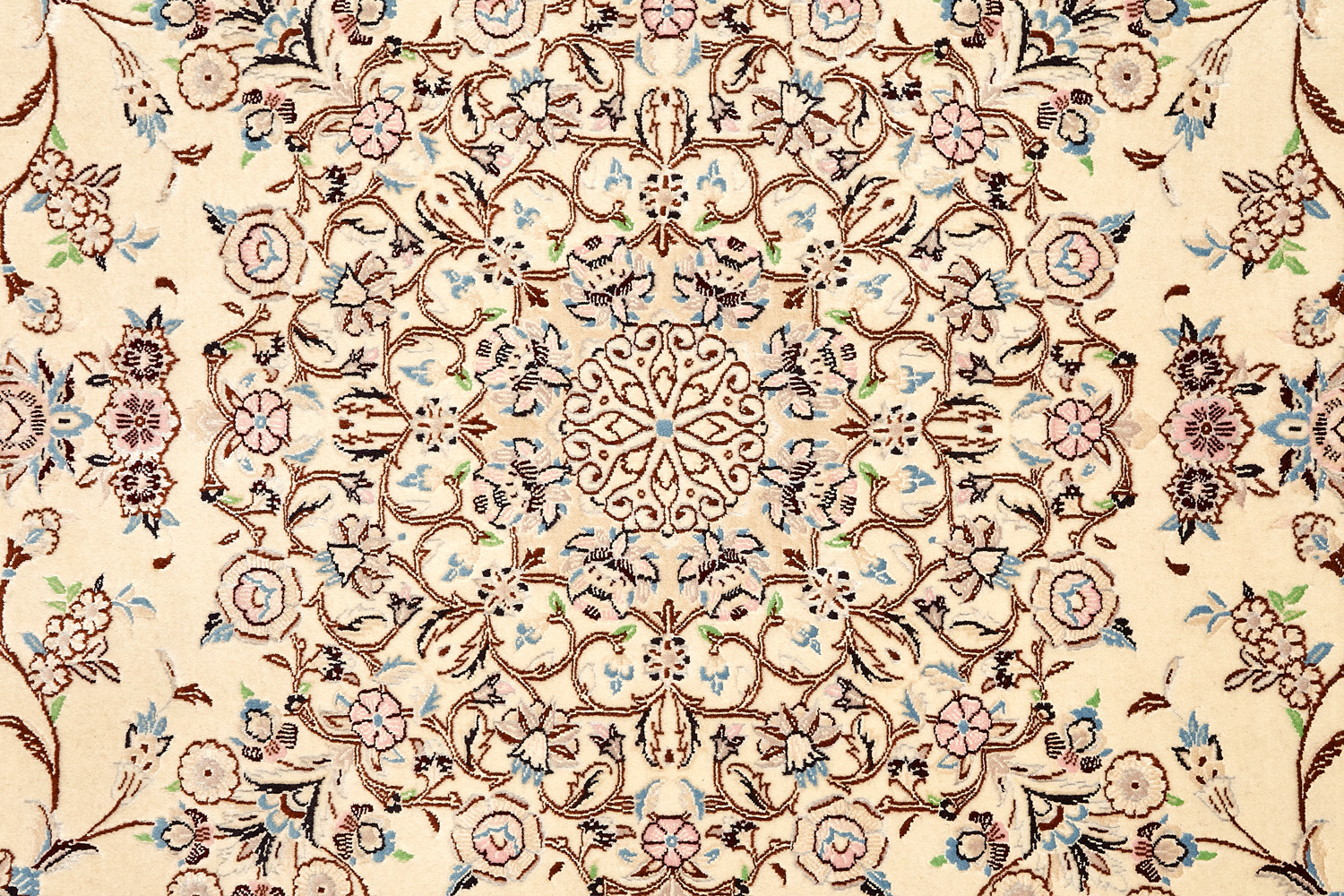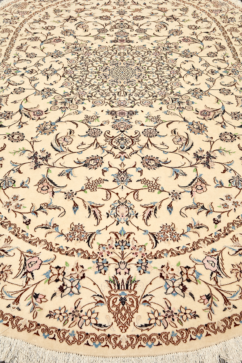 Иранский город Наин знаменит своими аристократичными коврами, которые совмещают в себе классические орнаменты с элегантной цветовой гаммой, выдержанной в бежево-голубых тонах с многочисленными нюансами.