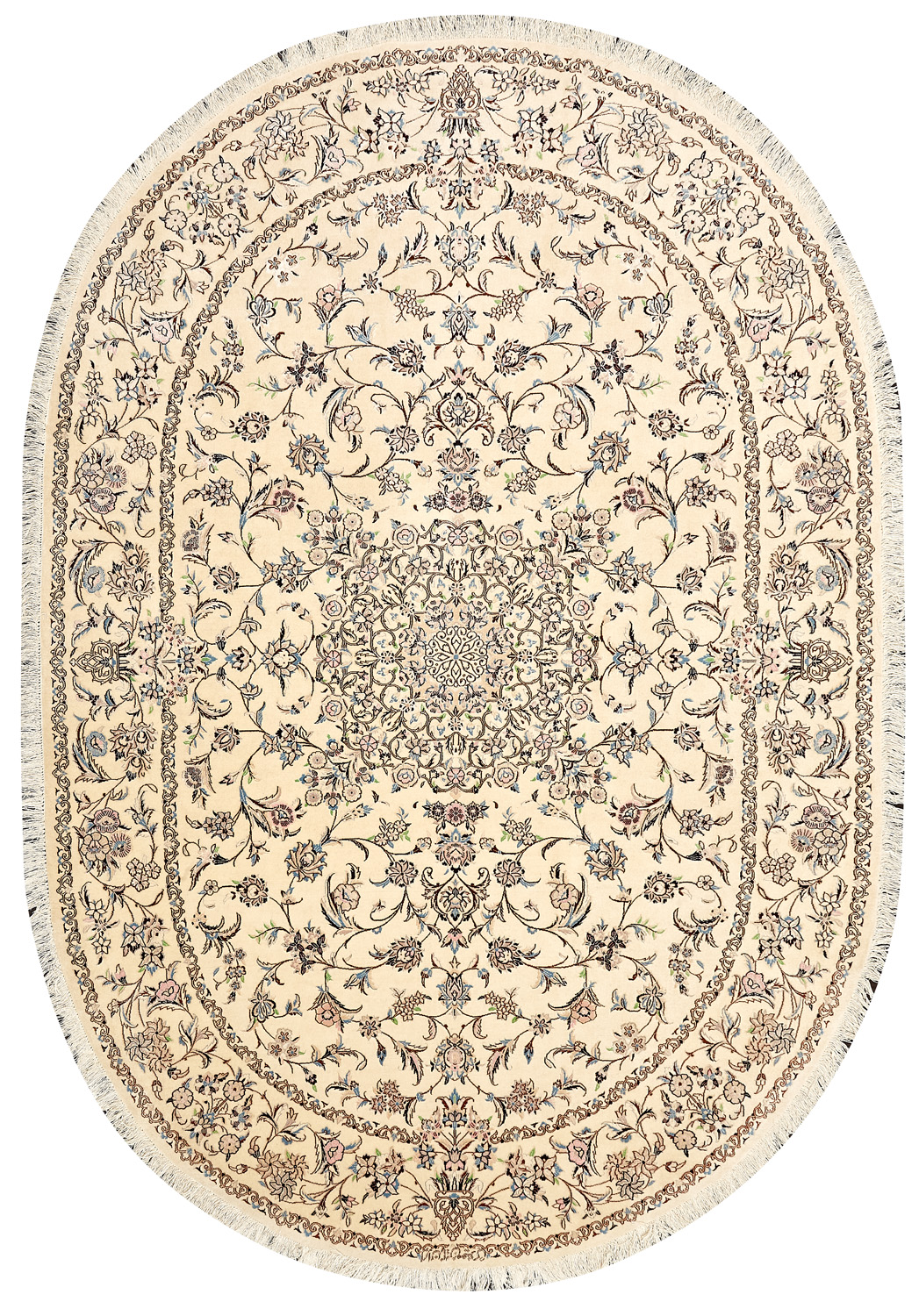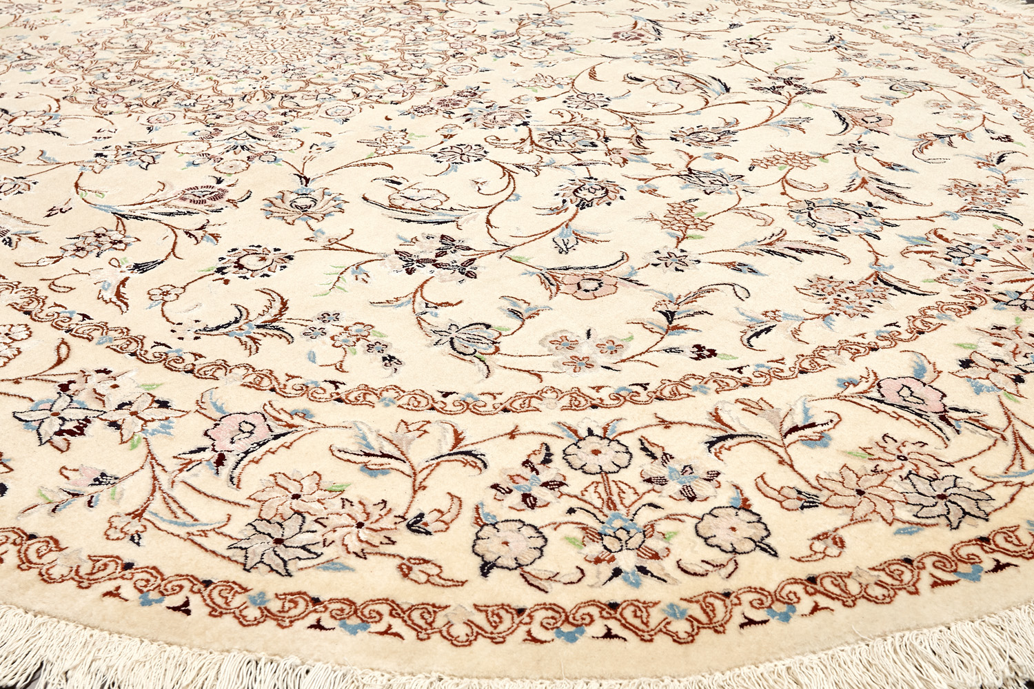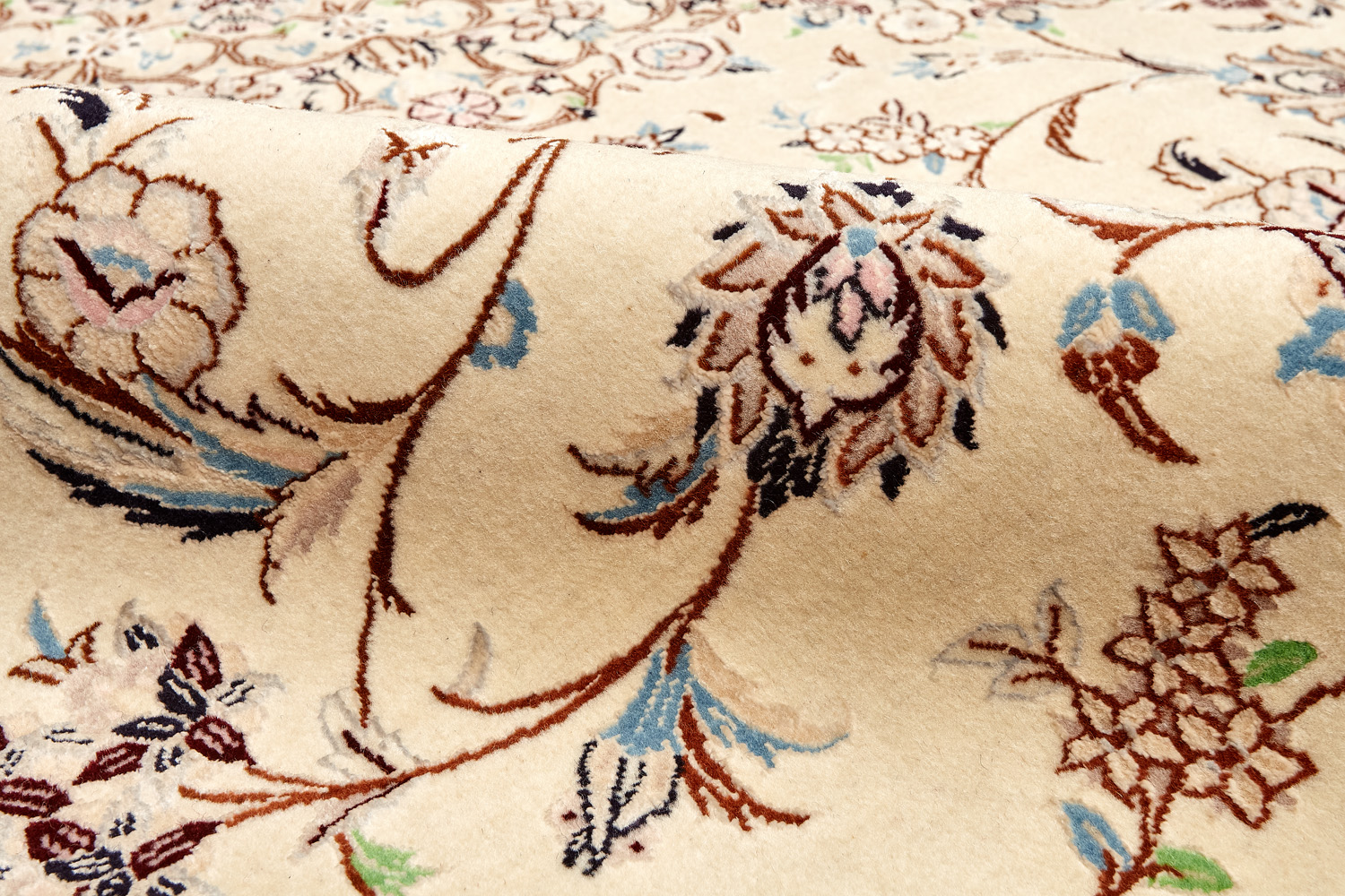 Иранский город Наин знаменит своими аристократичными коврами, которые совмещают в себе классические орнаменты с элегантной цветовой гаммой, выдержанной в бежево-голубых тонах с многочисленными нюансами.