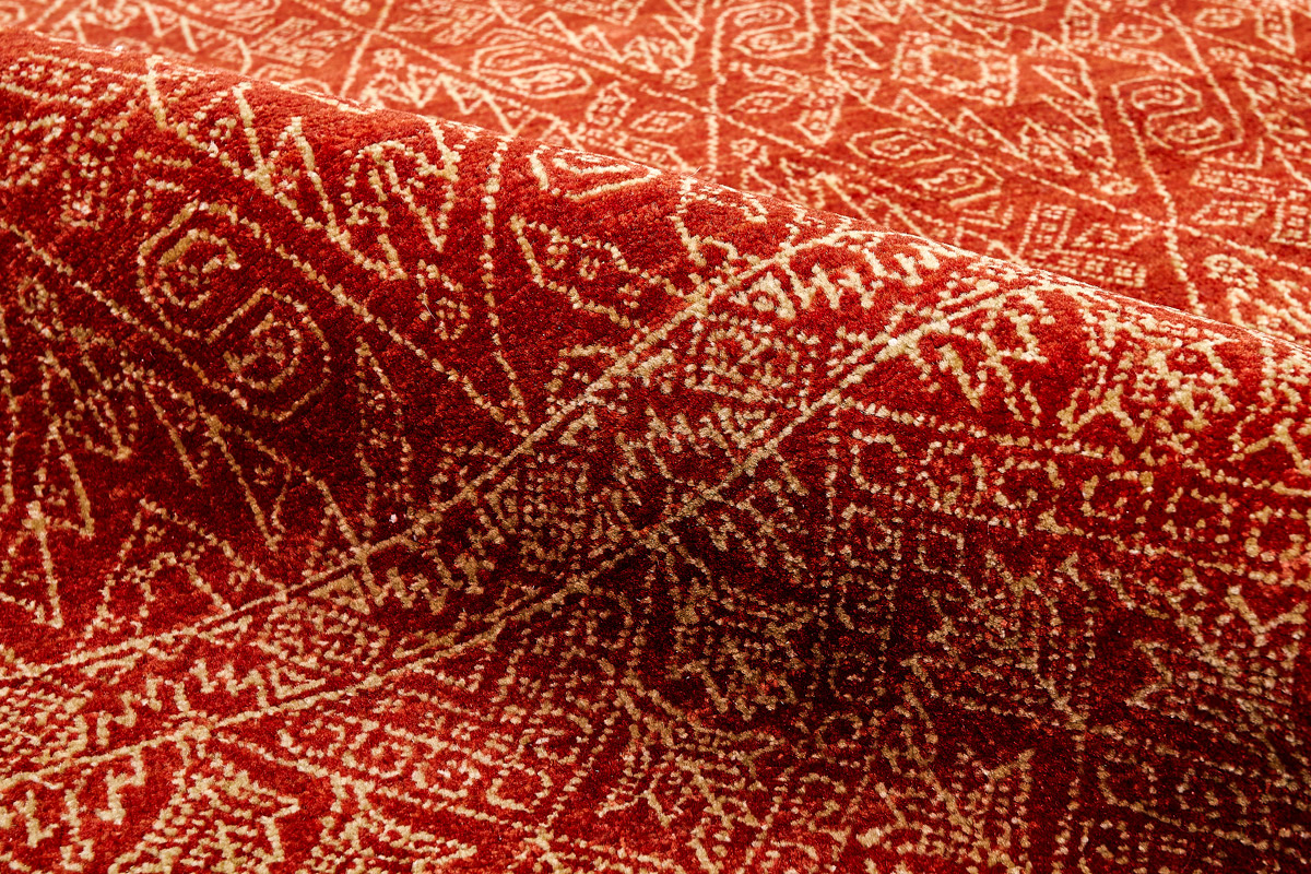 Дизайн ковров напоминает современные полотна художников-абстракционистов и производит столь же яркое и незабываемое впечатление в интерьере. Живописный эффект и необычная фактура зависят от выбора материала: натуральной шерсти, шёлка и от их сочетаний друг с другом. Ковры ткутся вручную в лучших мастерских Индии и Пакистана.