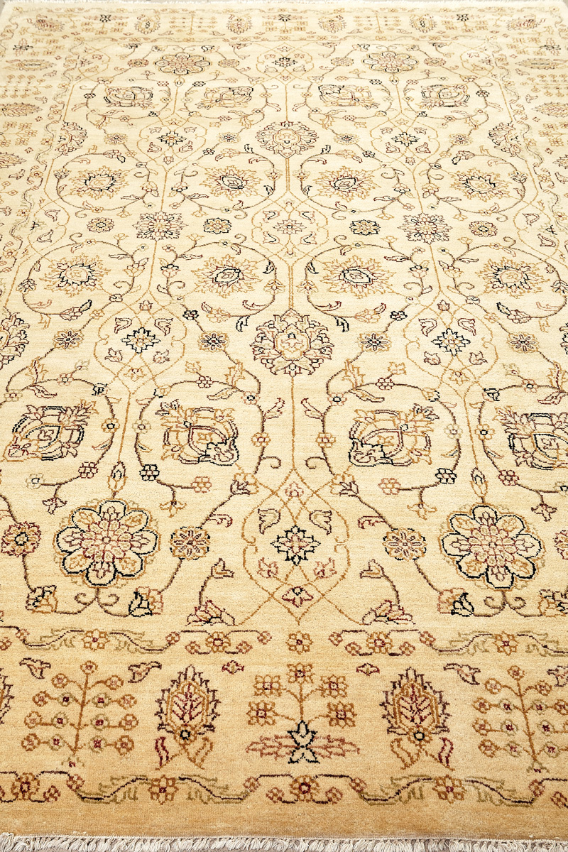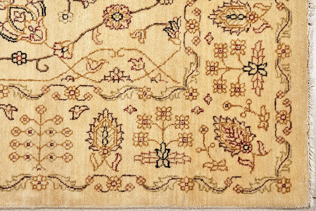 Более пяти веков назад в городе Агра зародилась знаменитая индийская школа ковроткачества, прославившаяся не меньше, чем расположенный здесь же Тадж-Махал. Мощное персидское влияние, помноженное на местный колорит, привело к появлению оригинальных орнаментов с богатыми растительными узорами — причудливым цветам, ветвям и листьям, разбросанным по всему полю ковра.