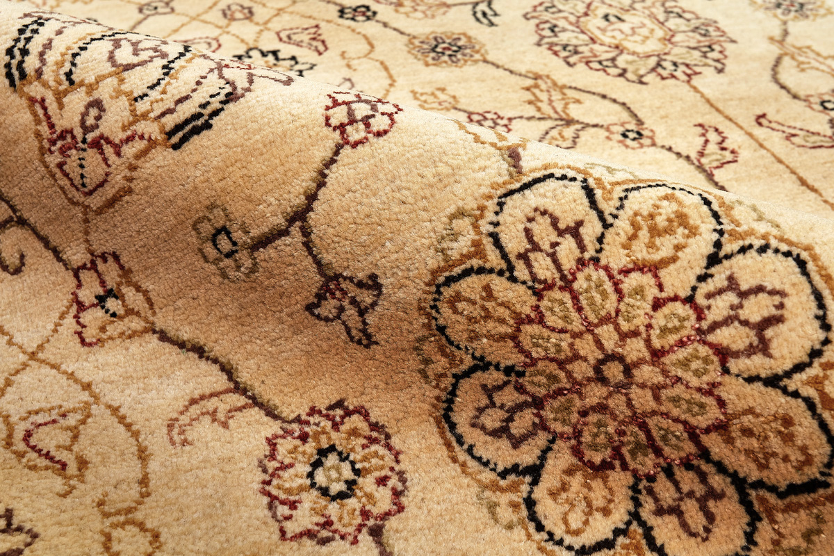 Каждый ковер в этой коллекции соткан вручную из шерсти и арт шёлка опытными индийскими мастерами.