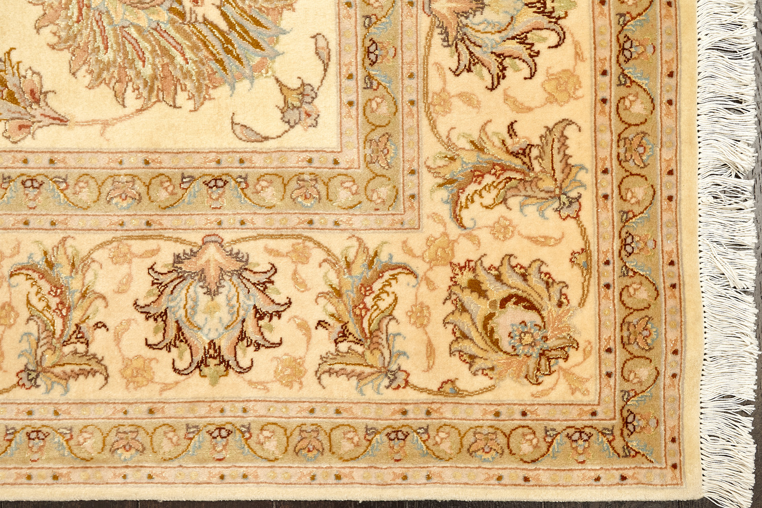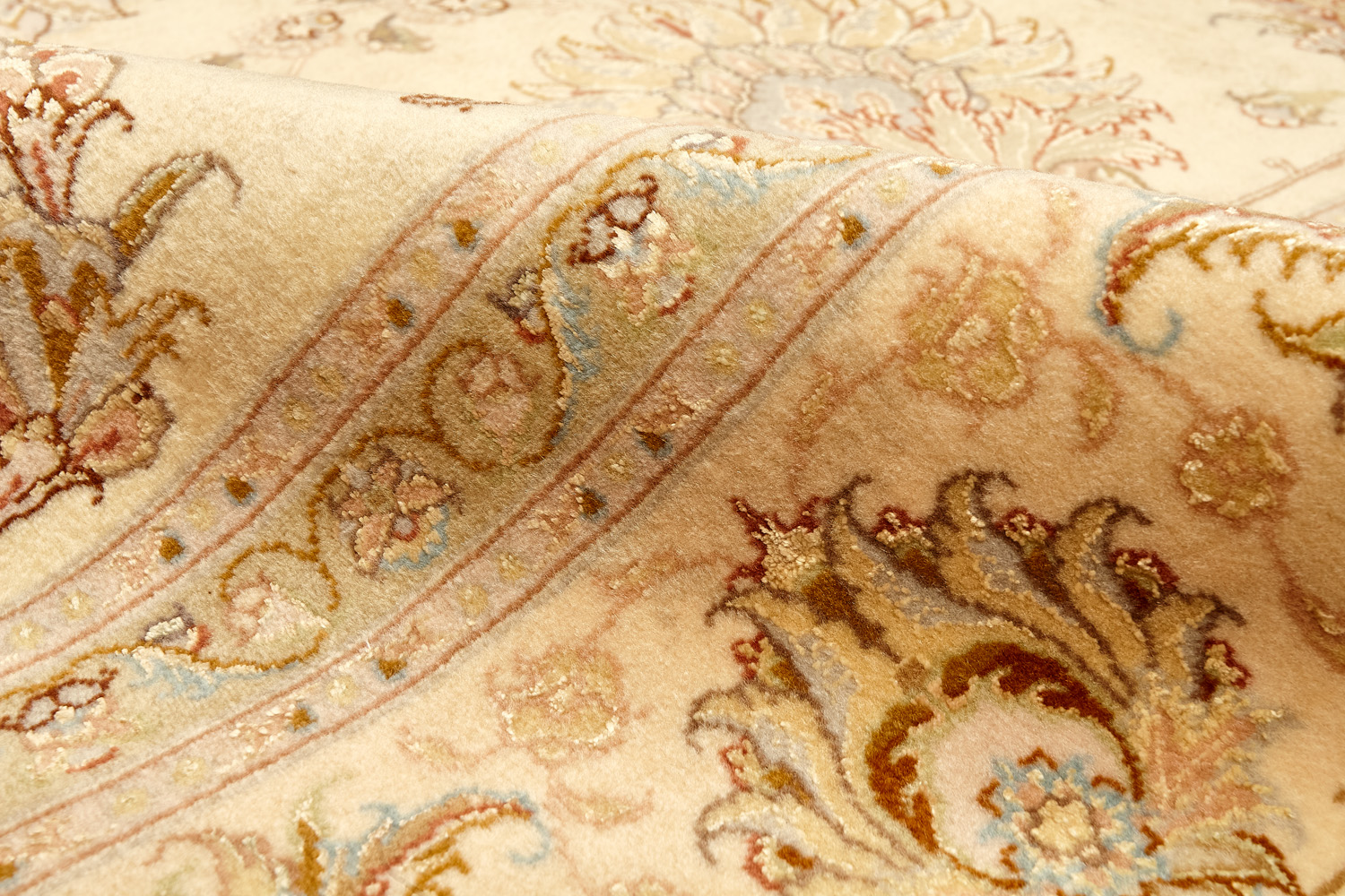 Ковры ткутся из шерсти и шёлка лучшими мастерами Ирана несколько лет, ведь обладают высочайшей плотностью для подобного состава ворса в 600 тысяч узлов на квадратный метр.