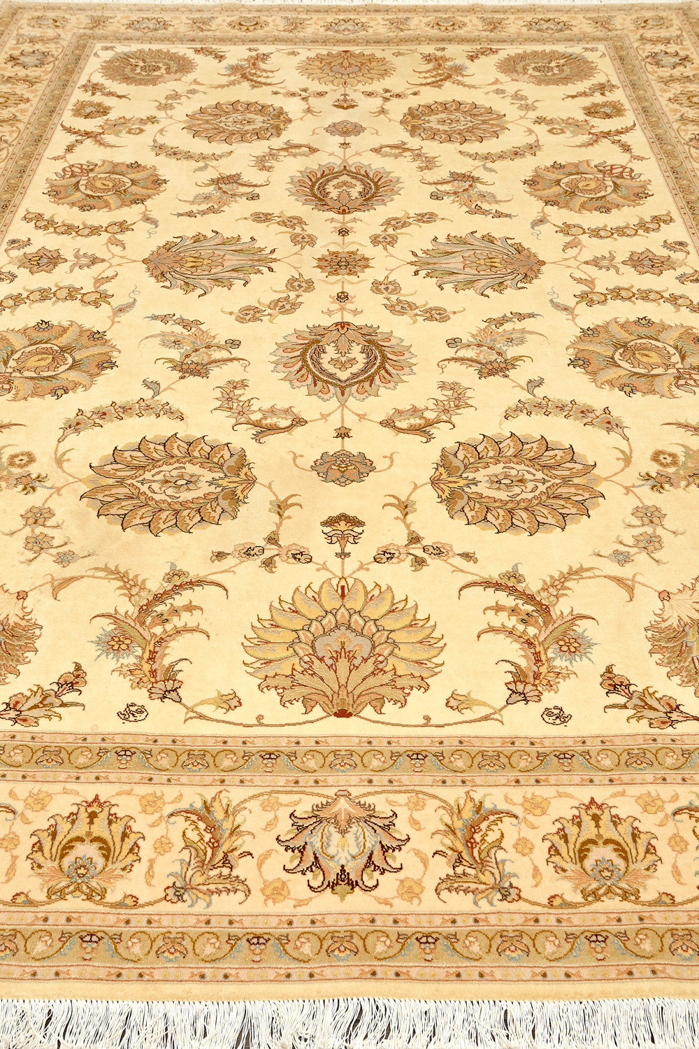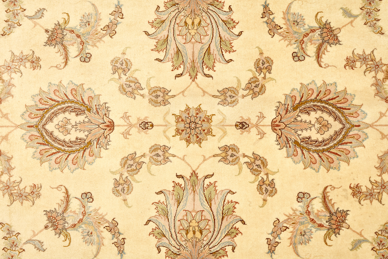 Рассыпанные по всему полю цветы, медальоны и «рыбная чешуя» — основные мотивы в дизайне ковров из коллекции Тебриз, а светлые тона и спокойные пастельные оттенки — основная цветовая палитра.