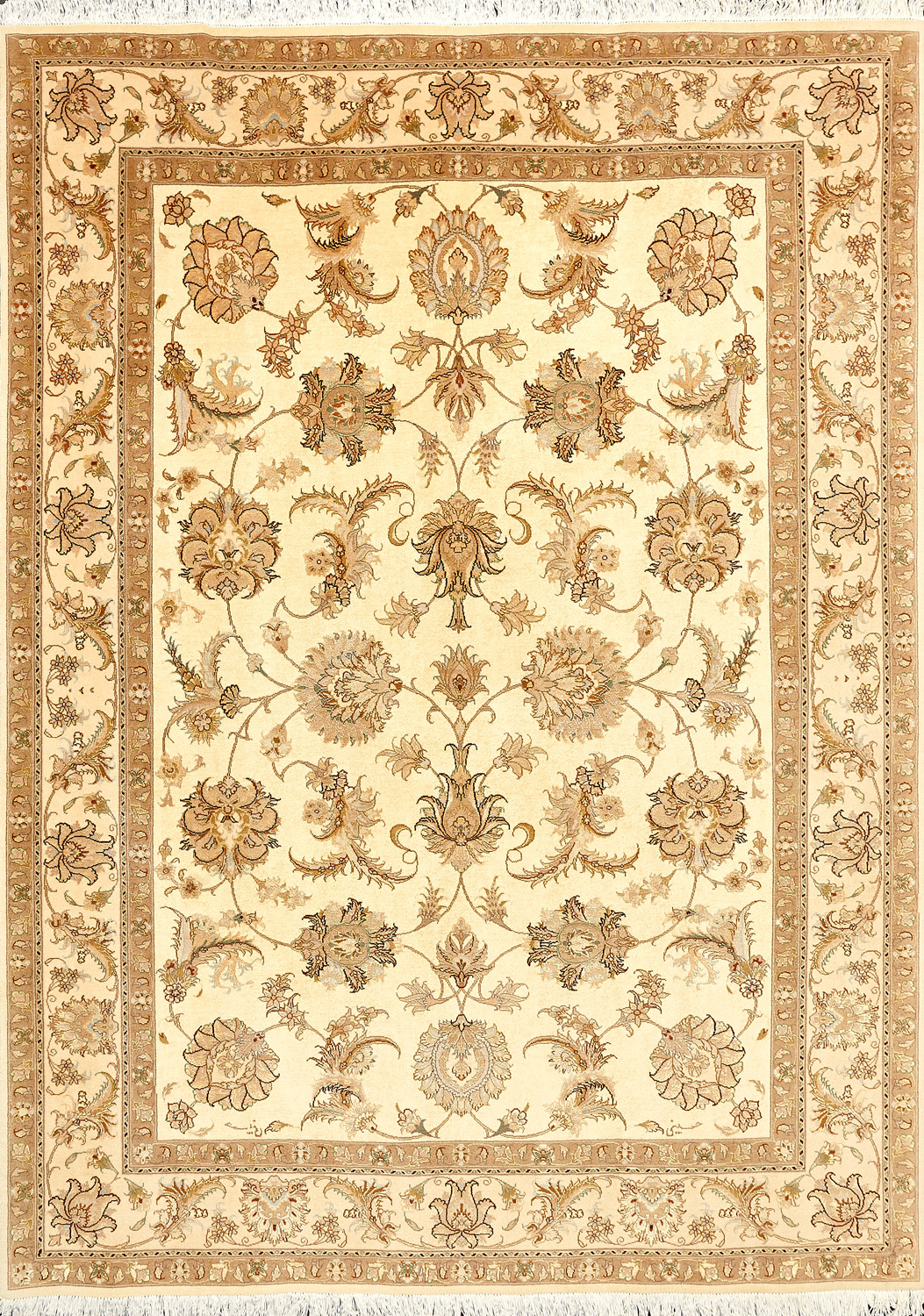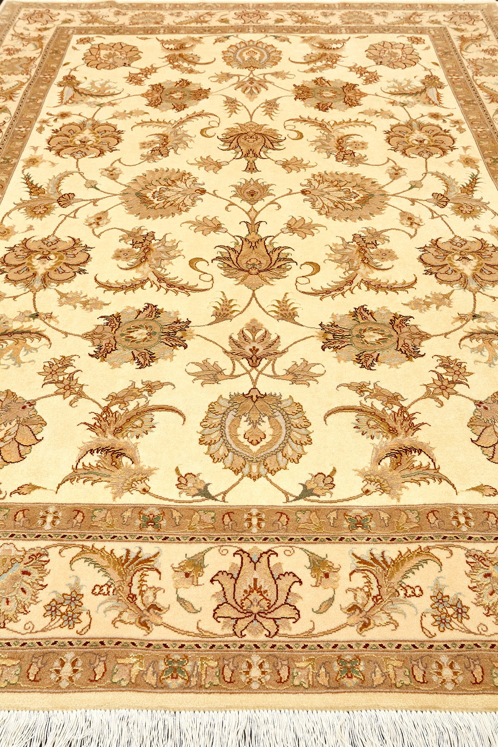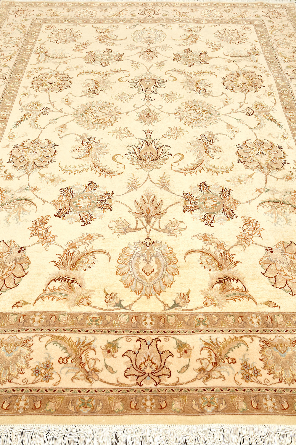 Рассыпанные по всему полю цветы, медальоны и «рыбная чешуя» — основные мотивы в дизайне ковров из коллекции Тебриз, а светлые тона и спокойные пастельные оттенки — основная цветовая палитра.