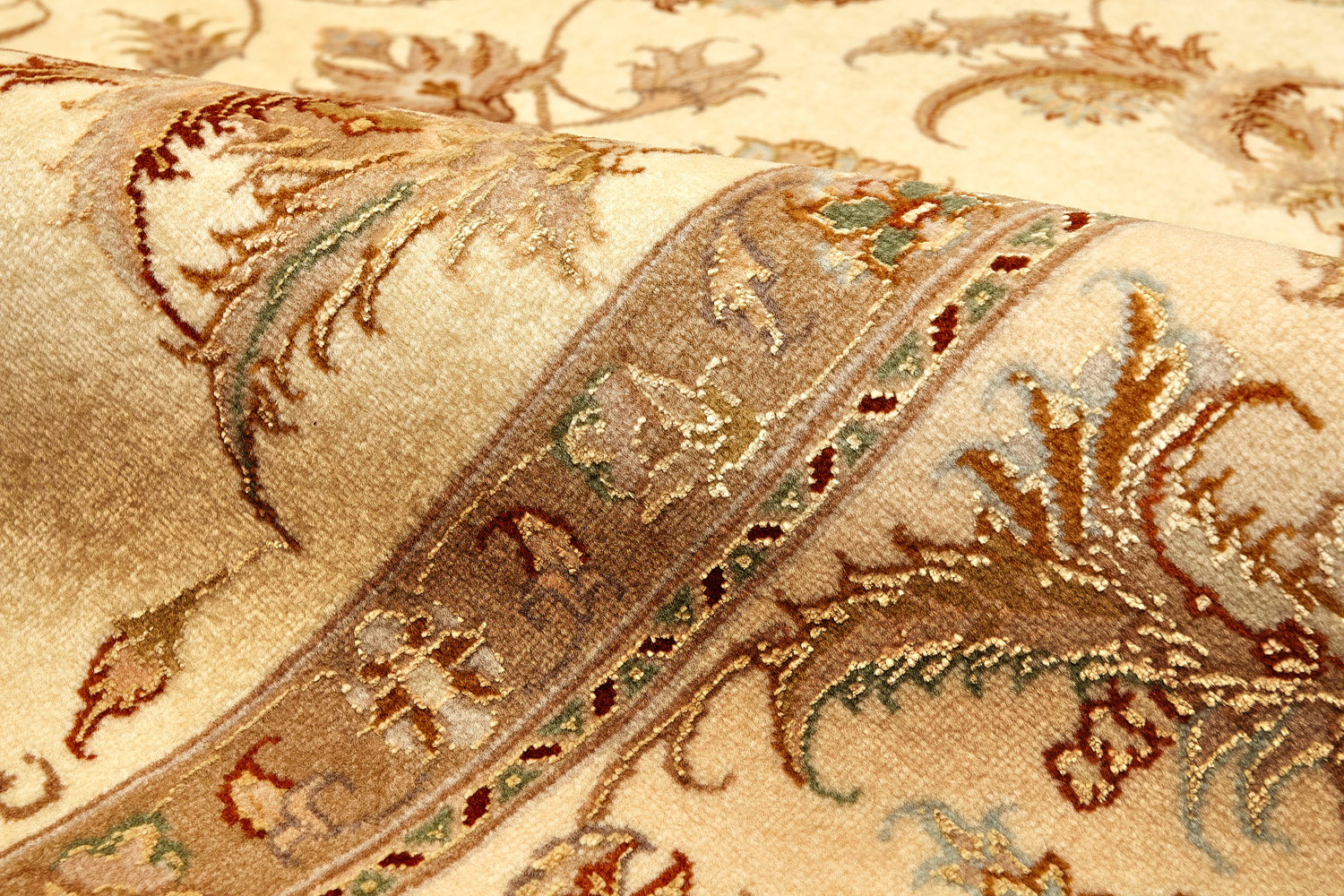 Ковры ткутся из шерсти и шёлка лучшими мастерами Ирана несколько лет, ведь обладают высочайшей плотностью для подобного состава ворса в 600 тысяч узлов на квадратный метр.