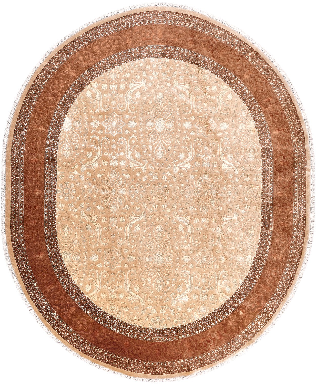 Более пяти веков назад в городе Агра зародилась знаменитая индийская школа ковроткачества, прославившаяся не меньше, чем расположенный здесь же Тадж-Махал. Мощное персидское влияние, помноженное на местный колорит, привело к появлению оригинальных орнаментов с богатыми растительными узорами — причудливым цветам, ветвям и листьям, разбросанным по всему полю ковра.