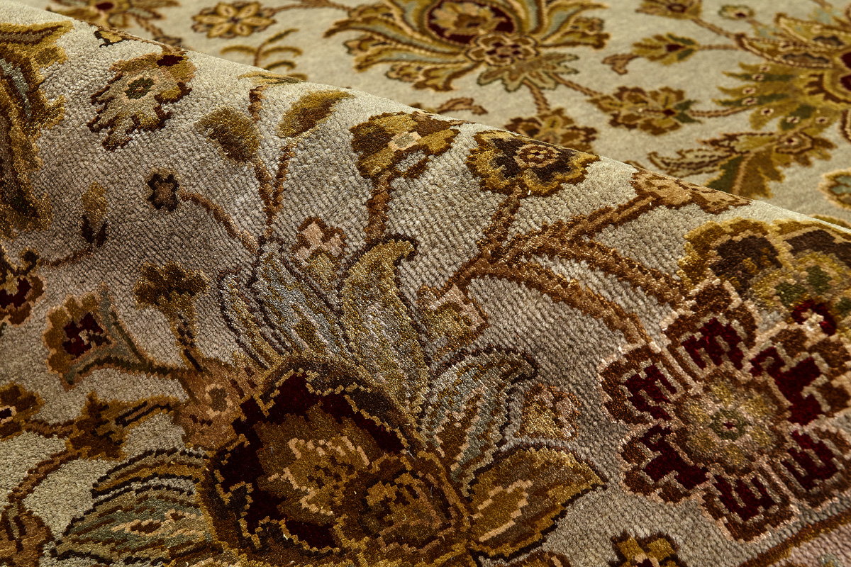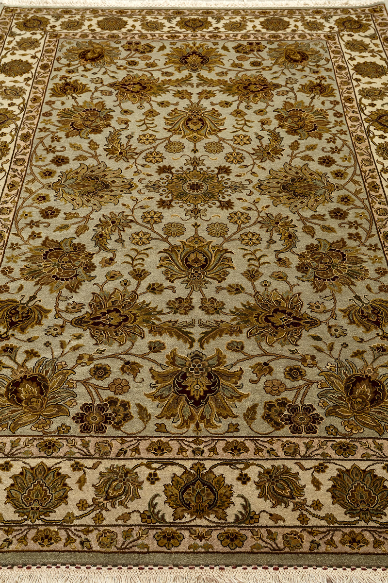 Более пяти веков назад в городе Агра зародилась знаменитая индийская школа ковроткачества, прославившаяся не меньше, чем расположенный здесь же Тадж-Махал. Мощное персидское влияние, помноженное на местный колорит, привело к появлению оригинальных орнаментов с богатыми растительными узорами — причудливым цветам, ветвям и листьям, разбросанным по всему полю ковра.