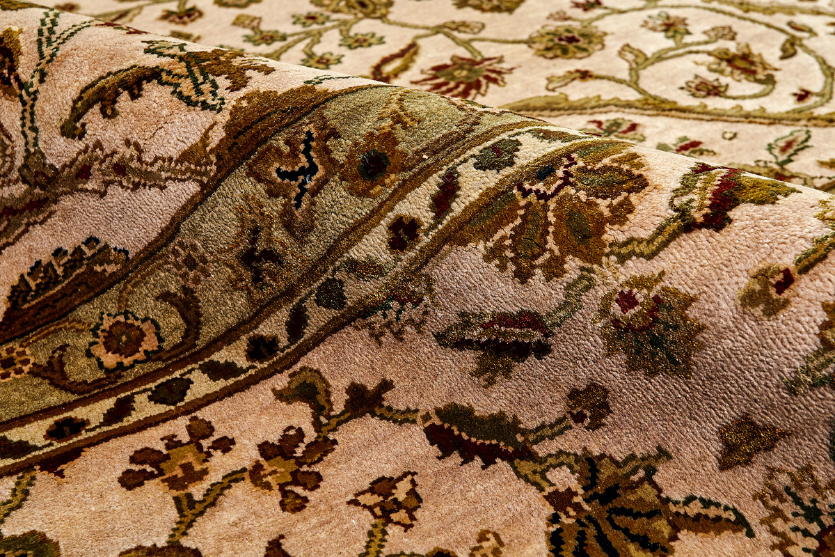 Более пяти веков назад в городе Агра зародилась знаменитая индийская школа ковроткачества, прославившаяся не меньше, чем расположенный здесь же Тадж-Махал. Мощное персидское влияние, помноженное на местный колорит, привело к появлению оригинальных орнаментов с богатыми растительными узорами — причудливым цветам, ветвям и листьям, разбросанным по всему полю ковра.
