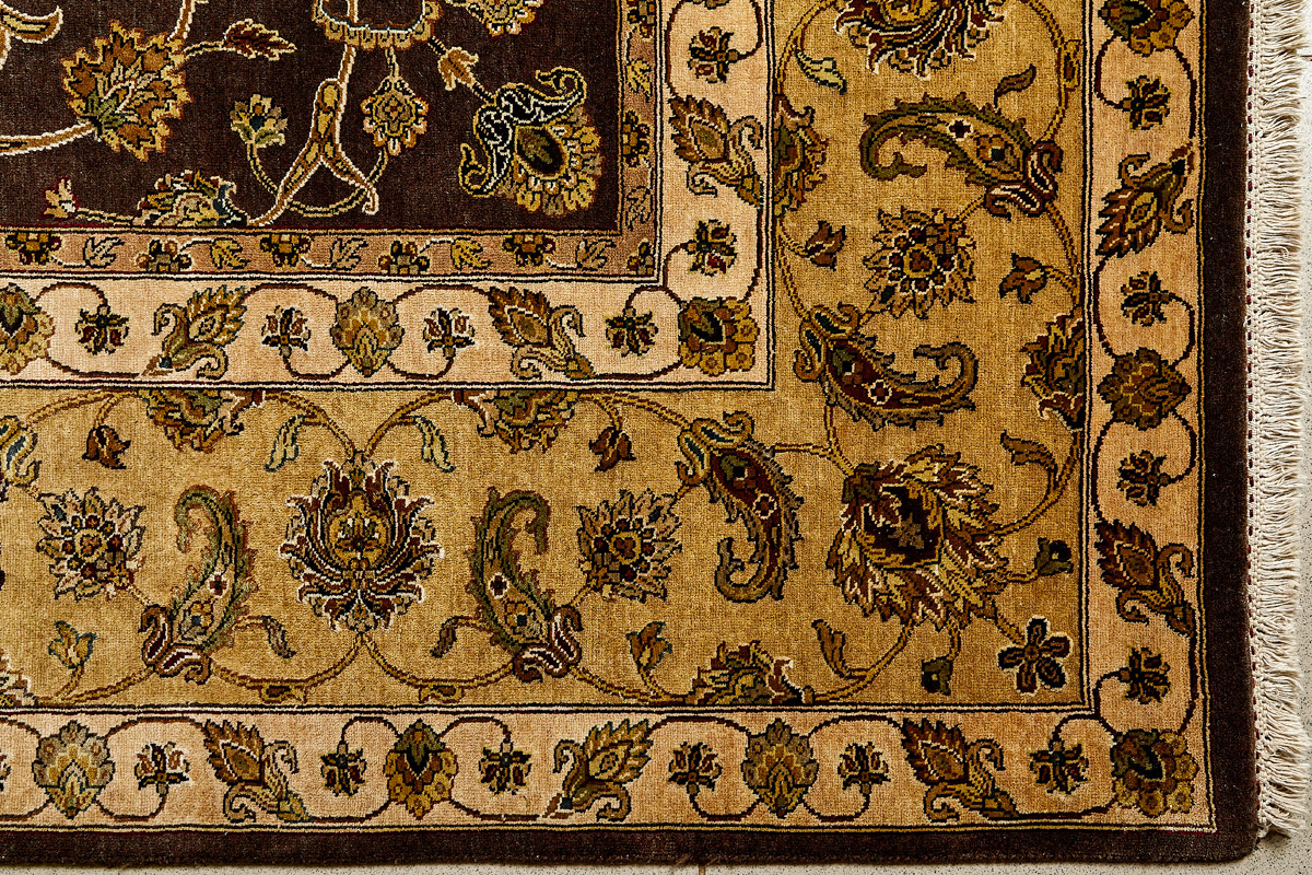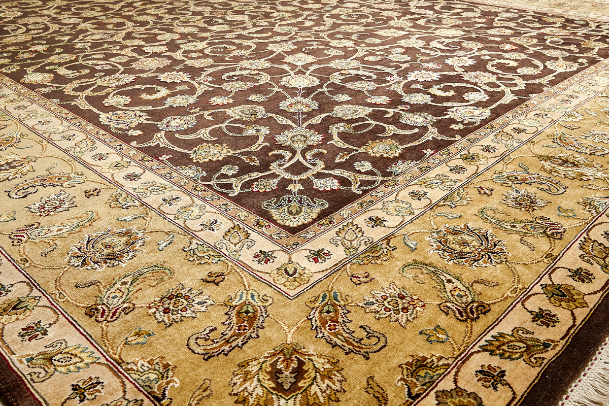 Более пяти веков назад в городе Агра зародилась знаменитая индийская школа ковроткачества, прославившаяся не меньше, чем расположенный здесь же Тадж-Махал. Мощное персидское влияние, помноженное на местный колорит, привело к появлению оригинальных орнаментов с богатыми растительными узорами — причудливым цветам, ветвям и листьям, разбросанным по всему полю ковра.