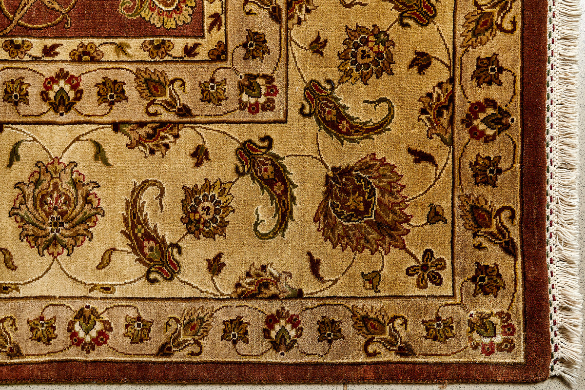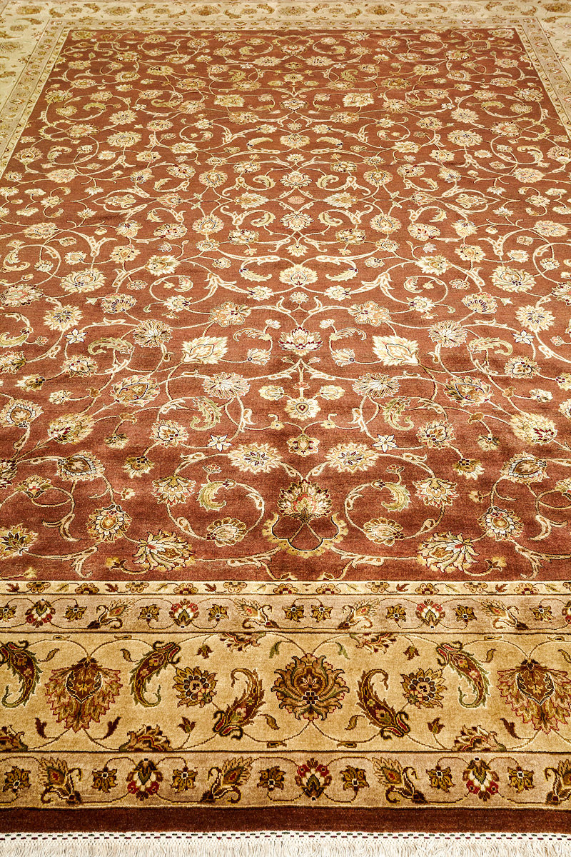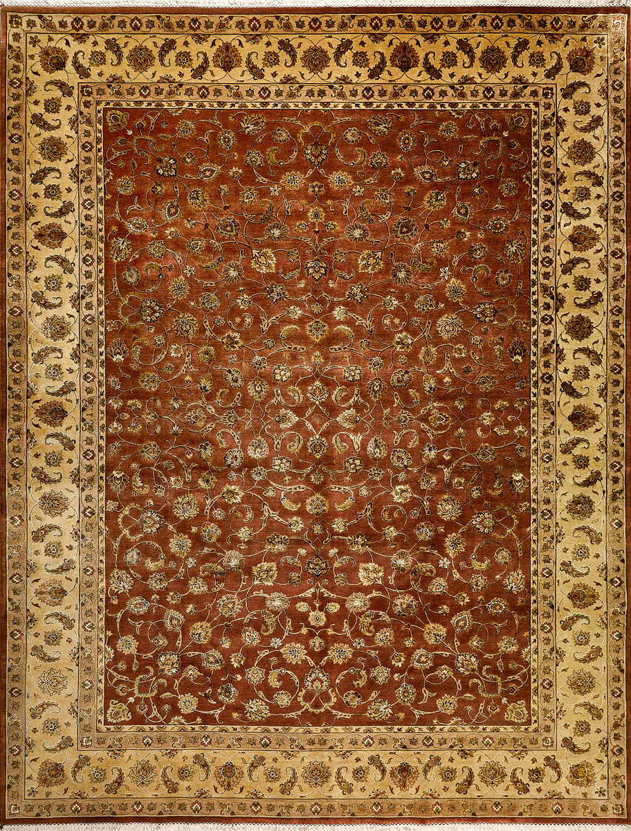 Более пяти веков назад в городе Агра зародилась знаменитая индийская школа ковроткачества, прославившаяся не меньше, чем расположенный здесь же Тадж-Махал. Мощное персидское влияние, помноженное на местный колорит, привело к появлению оригинальных орнаментов с богатыми растительными узорами — причудливым цветам, ветвям и листьям, разбросанным по всему полю ковра.