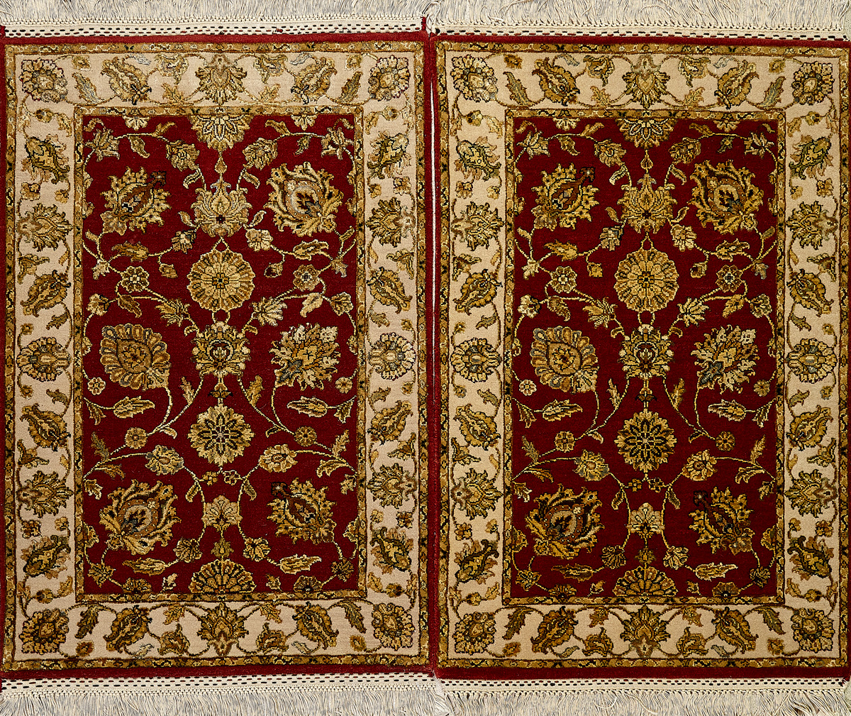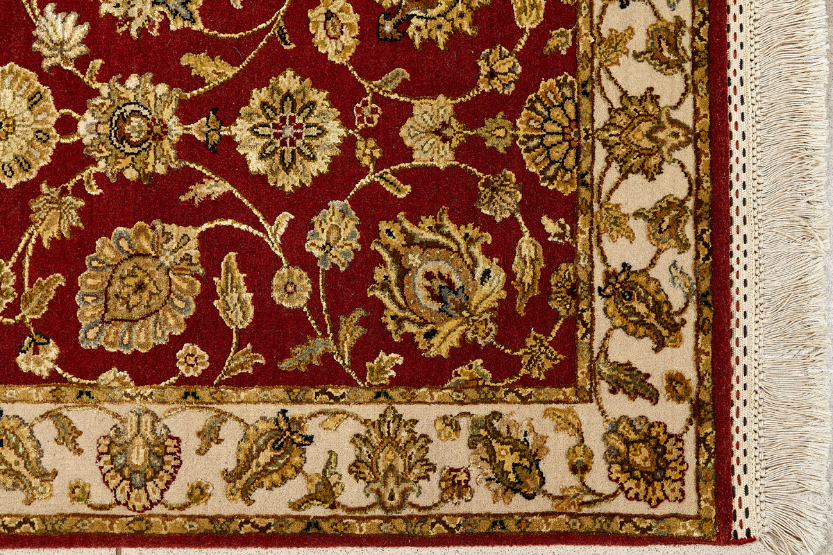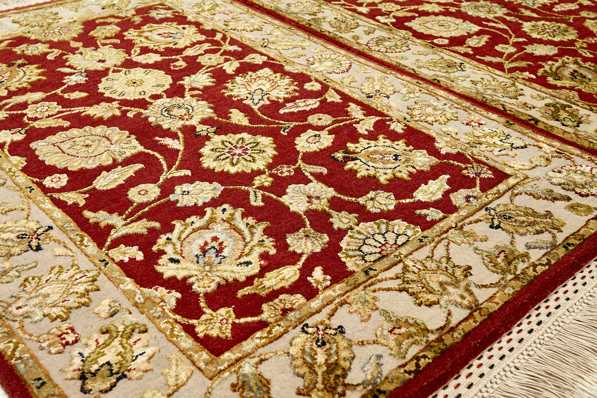 Более пяти веков назад в городе Агра зародилась знаменитая индийская школа ковроткачества, прославившаяся не меньше, чем расположенный здесь же Тадж-Махал. Мощное персидское влияние, помноженное на местный колорит, привело к появлению оригинальных орнаментов с богатыми растительными узорами — причудливым цветам, ветвям и листьям, разбросанным по всему полю ковра.