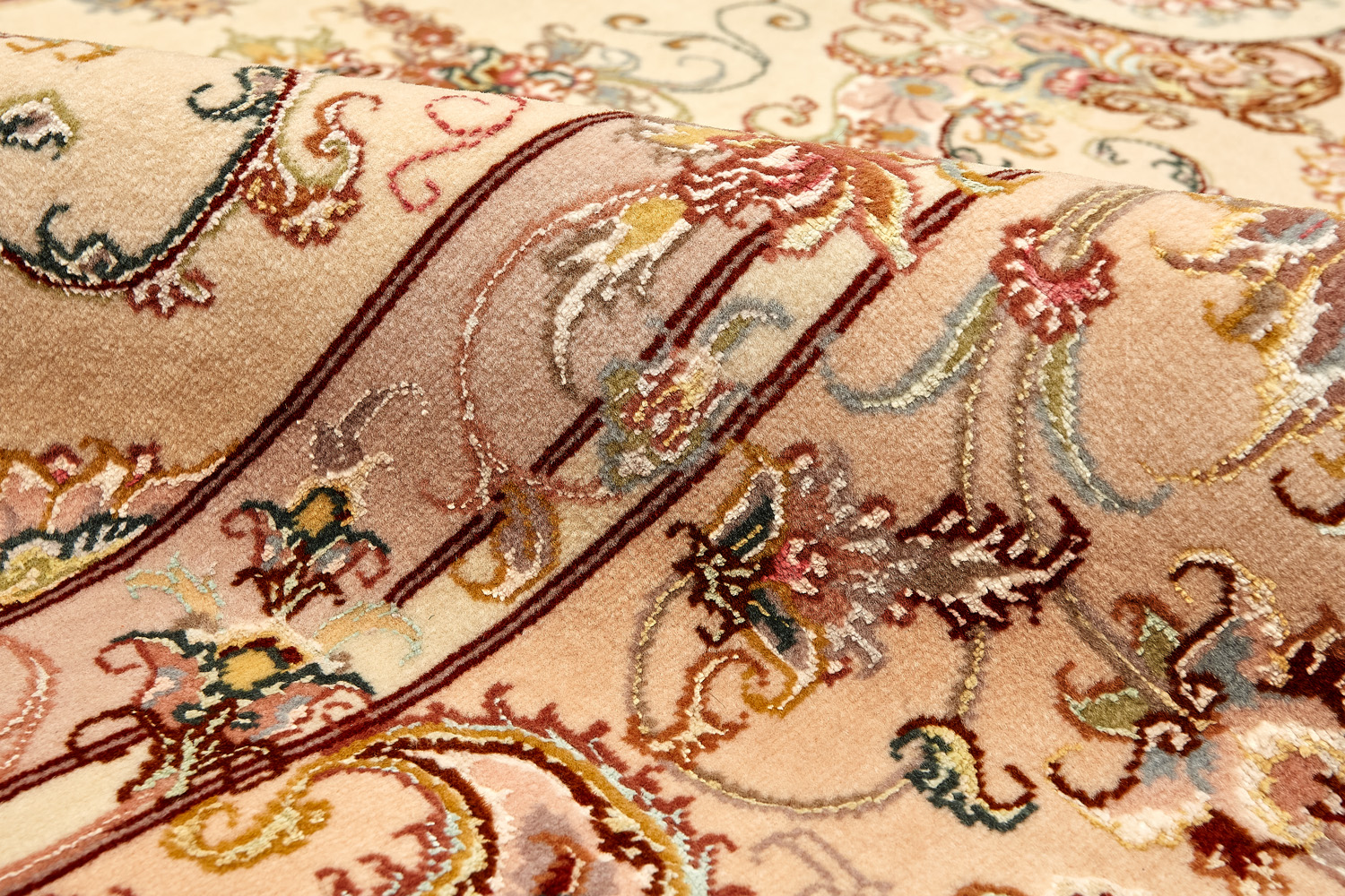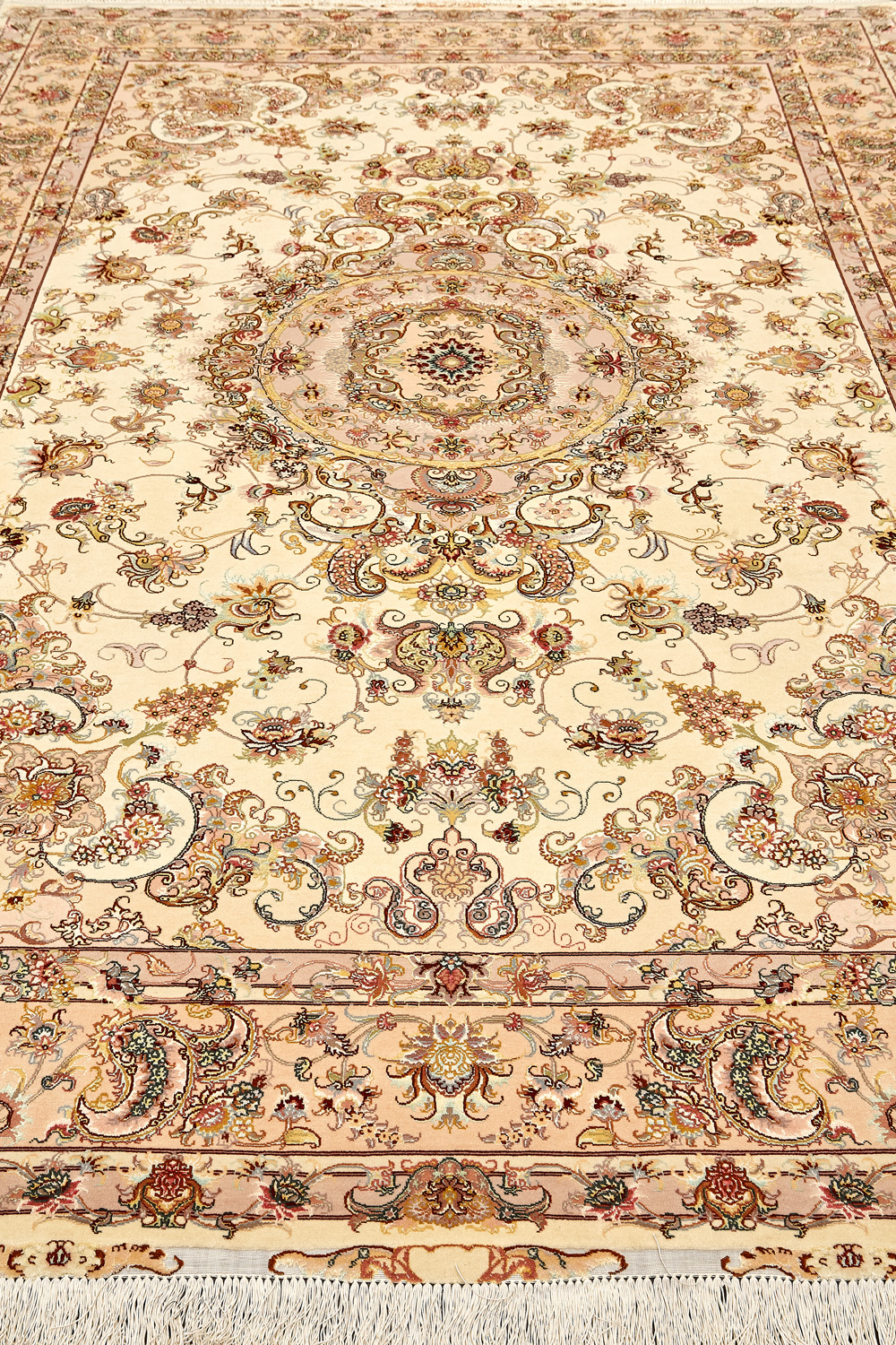 Ковры ткутся из шерсти и шёлка лучшими мастерами Ирана несколько лет, ведь обладают высочайшей плотностью для подобного состава ворса в 600 тысяч узлов на квадратный метр.